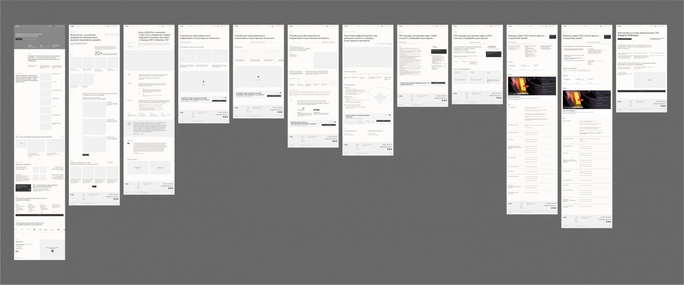 По текстовому ТЗ заказчика с помощью вайрфреймов создали структуру каждой страницы сайта. Это помогло определить последовательность блоков, расставить акценты и понять, как будет выглядеть дизайн в целом. Благодаря созданию вайрфреймам удалось избежать любых недопониманий перед началом работ по дизайну и верстке.