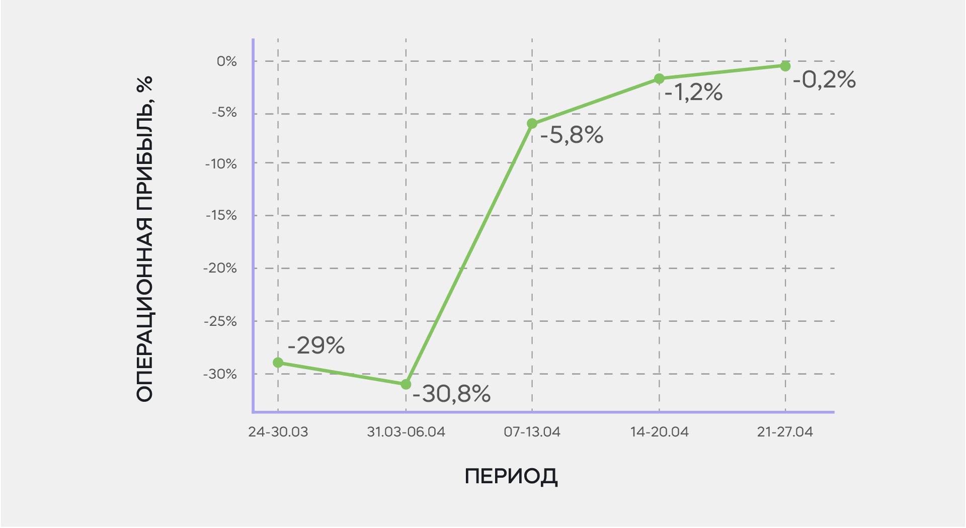 1. Участие в акциях с контролем маржинальности. Из-за жесткой ценовой политики цены для каждой единицы товара приходилось контролировать вручную параллельно с операционной маржинальностью. Отталкиваясь от этих данных, выбирали продукты для участия в акциях. Если артикул начинал продаваться ниже 30% операционной маржи или не удовлетворял заказчика по цене, выводили его из акции и поддерживали рекламой.
