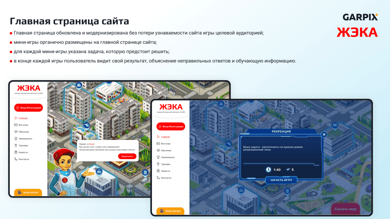 • Модернизировали система проведения турниров по игре «ЖЭКА»