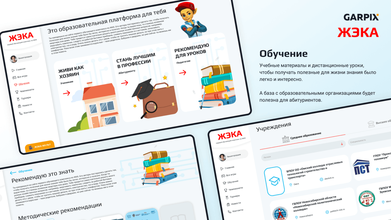 Более 70% графических элементов на главной странице сайта кликабельны, интерактивны и несут смысловую обучающую информацию по тематике всех уровней игры «ЖЭКА».