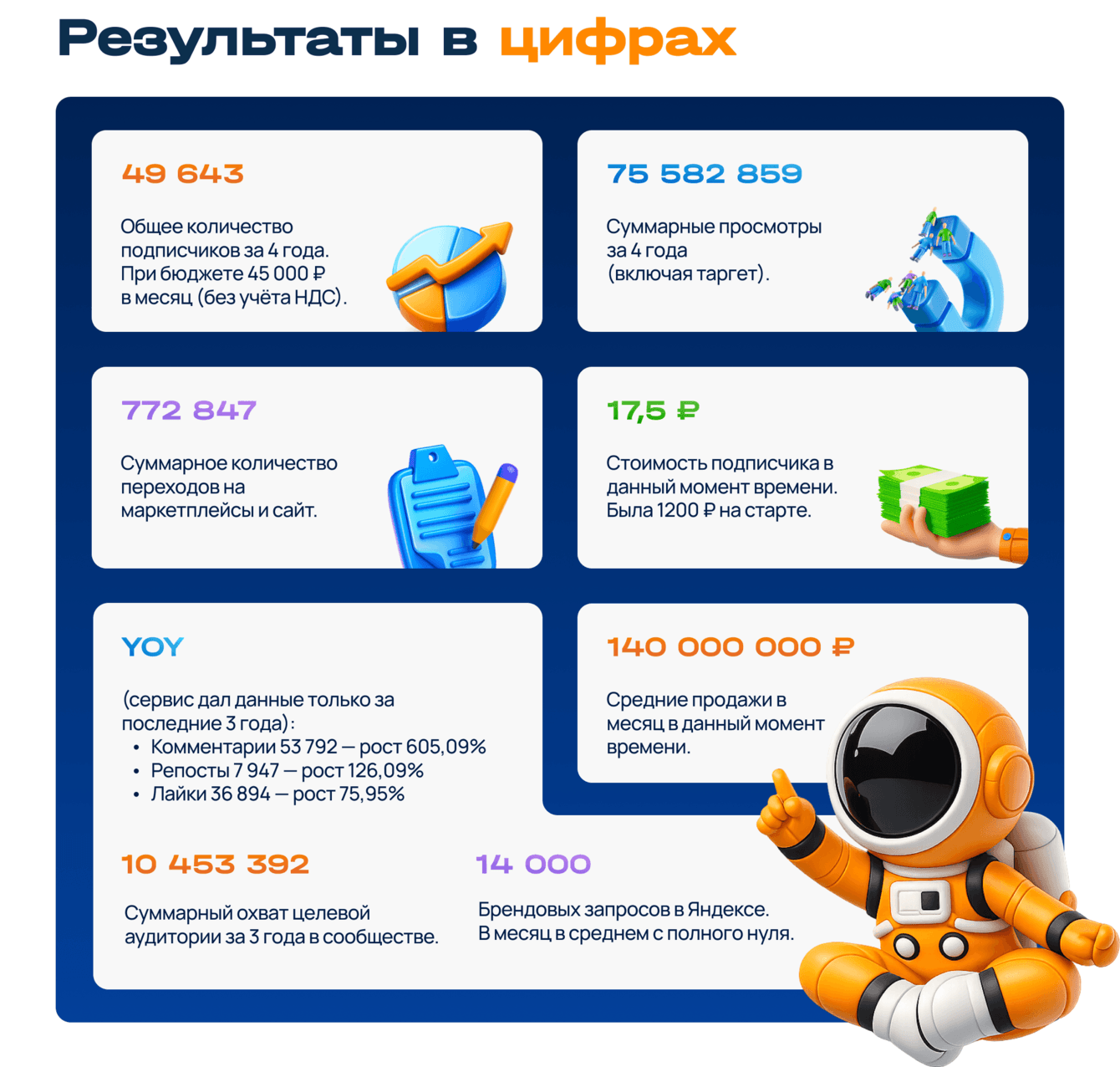 Думаю, что это уникальная ситуация, когда продукт добивается высоких продаж на маркетплейсах и не вкладывается во внутреннее продвижение. Благодаря продуманной SMM-стратегии и качественному трафику мы запустили снежный ком, который уже не остановить. Естественно, видя, что продукт набирает популярность, OZON рекомендовал его людям и вышел с дирекцией ПРП на созвон, предложив уникальные условия сотрудничества.