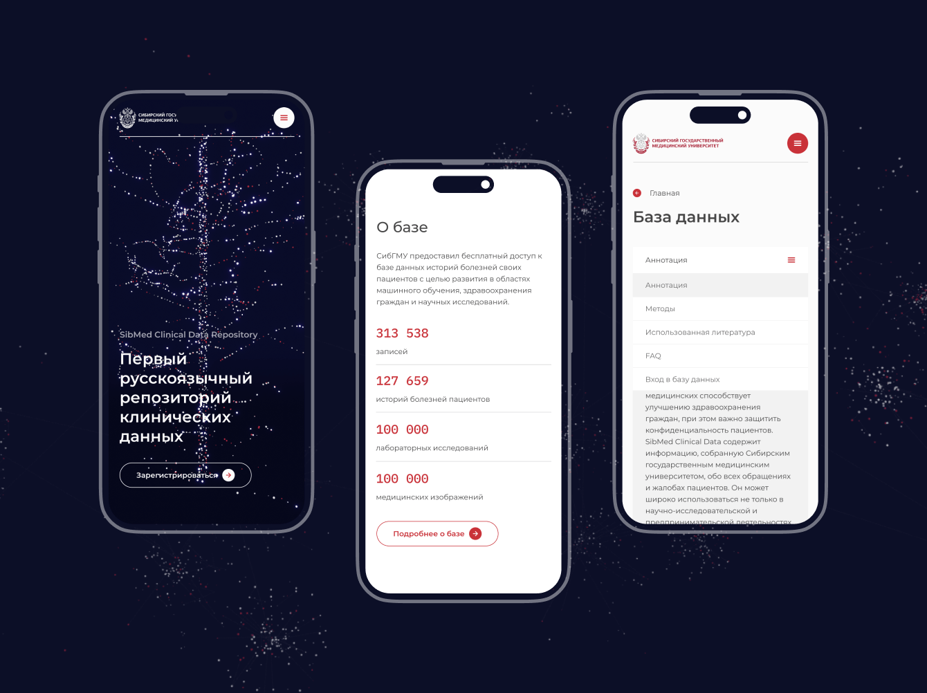 Мы разработали SibMed Clinical Data Repository — репозиторий обезличенных данных о здоровье пациентов многопрофильных клиник СибГМУ. Он позволяет СибГМУ копить, сохранять и распространять анонимизированные клинические данные более 120 000 пациентов, которые амбулаторно или стационарно наблюдались в клиниках СибГМУ с 2022 года по настоящее время.