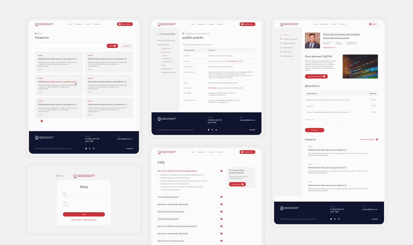 При разработке дизайна для данного проекта мы руководствовались дизайн-системой и брендбуком СибГМУ, реализованными нами ранее. Они помогли создать платформу в единой стилистике с остальными сайтами университета.