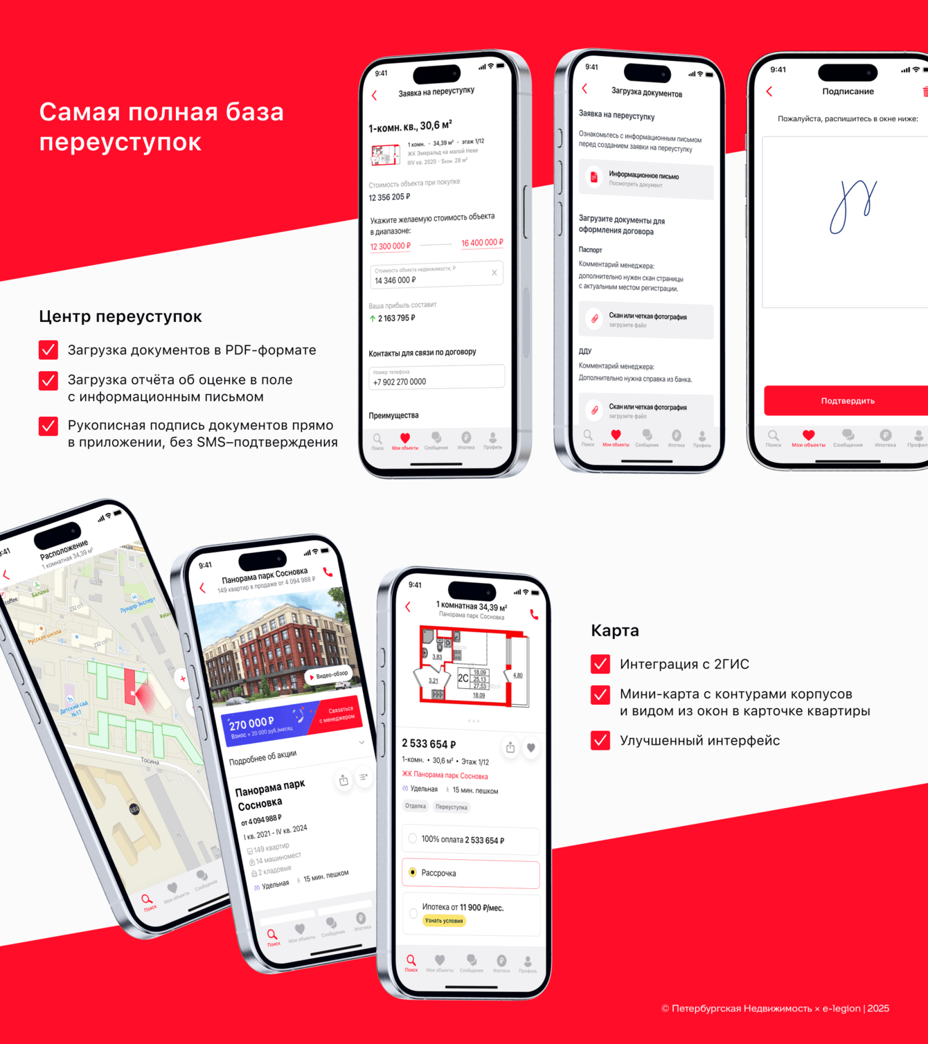 Сегодня каждая третья квартира в Санкт-Петербурге продаётся через «Петербургскую Недвижимость». Чтобы сохранять лидерство на рынке, нам важно иметь удобные и технологичные каналы коммуникации с клиентами. Поэтому приоритетное внимание мы уделяем внедрению цифровых решений, ориентируясь на потребности покупателей. 2023 год мы посвятили работе над развитием одного из главных инструментов – мобильного приложения. Наши усилия были сосредоточены на повышении основной функциональности приложения и автоматизации процесса покупки квартиры. Осуществили перевод сервисных услуг в digital и подготовили приложение к интеграции новых продуктов компании. Благодарим команду e-legion за оперативную и качественную реализацию поставленных задач!