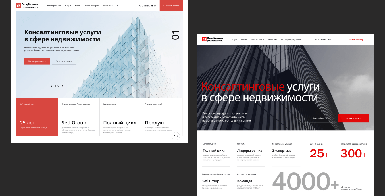 3. На основе 3-х блоков главной сайта разработали 2 дизайн-концепции проекта.