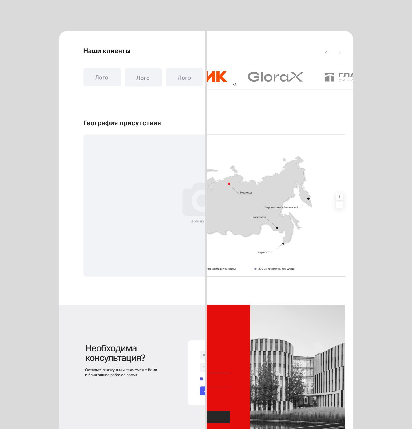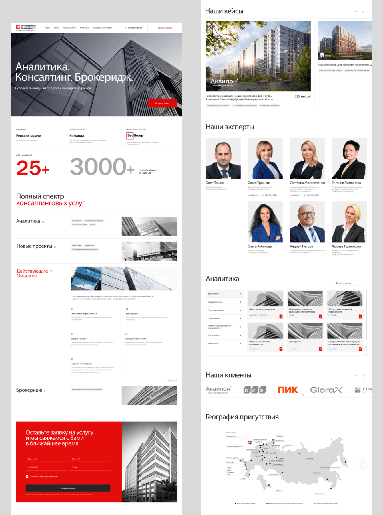 Нашей главной задачей стало – создать гибкий в обслуживании одностраничный сайт, который отразит ключевые виды услуг, при этом своим дизайном подчеркнет надежность компании и будет формировать доверие его пользователей. Сайт должен иметь интуитивно понятный пользовательский интерфейс, чтобы клиент мог осуществлять все действия самостоятельно.