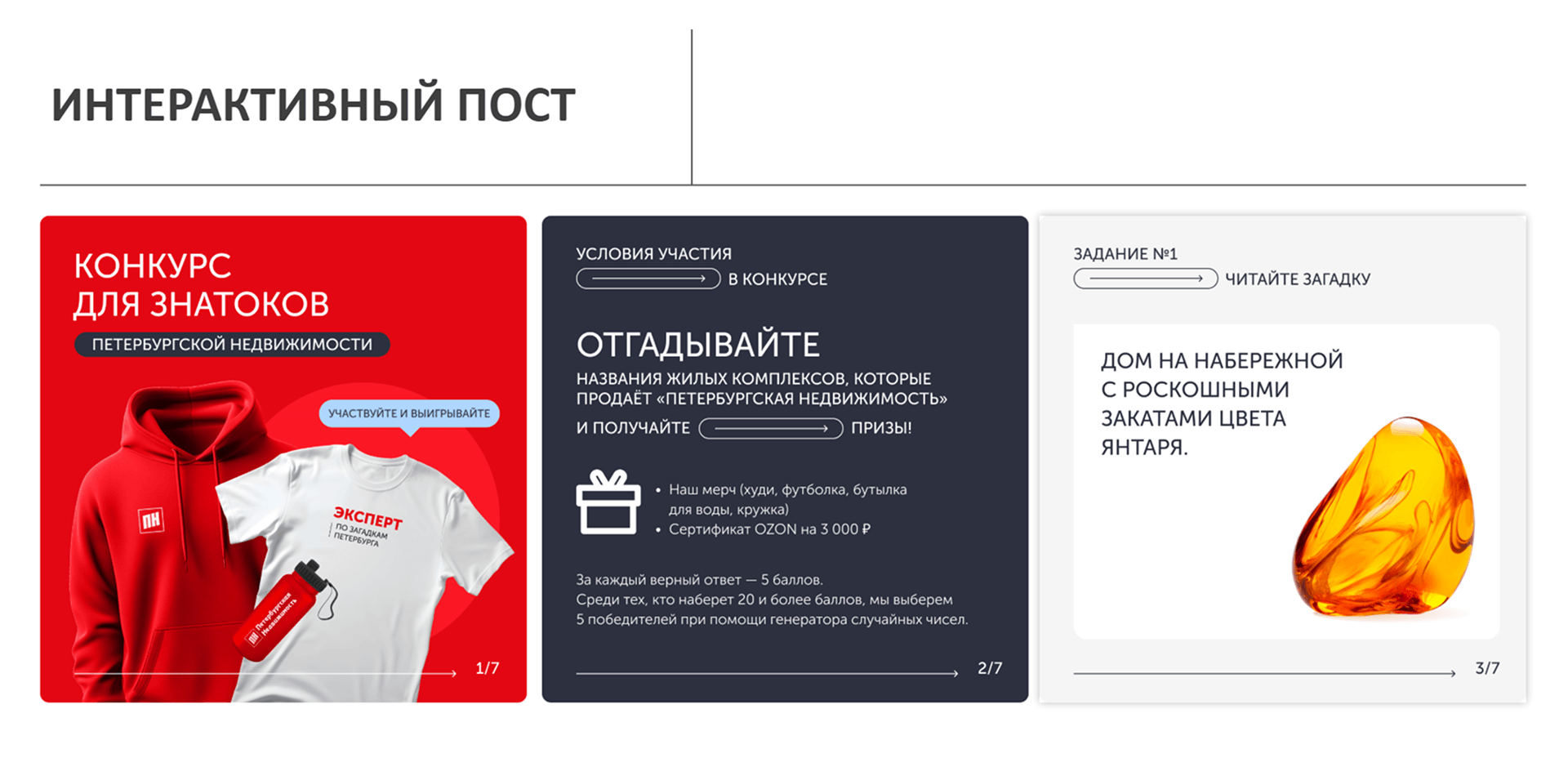 Особое внимание — вовлечению. Подключили интерактивные механики и сохранили привычные форматы. Конкурсы запускаем ежемесячно — это даёт точку контакта и привычку возвращаться к бренду.