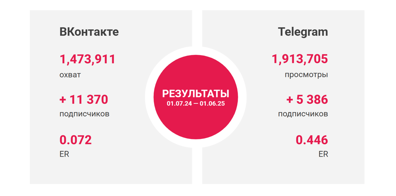 Запустили таргетированную рекламу и посевы во ВКонтакте и Telegram — чтобы усилить рост аудитории и вовлечённость.