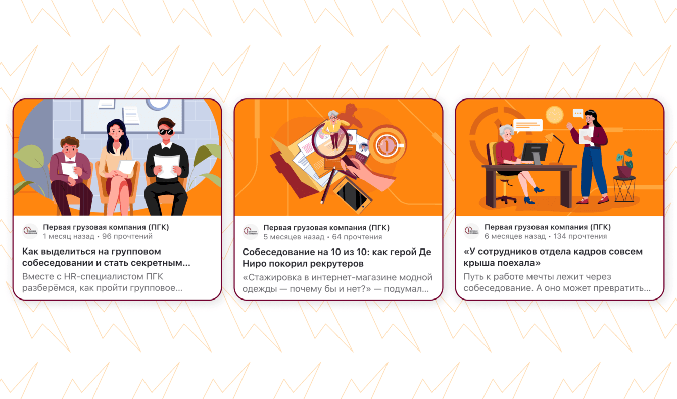 В Дзене ежемесячно публиковали лонгриды — кейсы компании и обучающие HR-материалы на широкую аудиторию. Их же адаптировали и для блога на vc.ru.