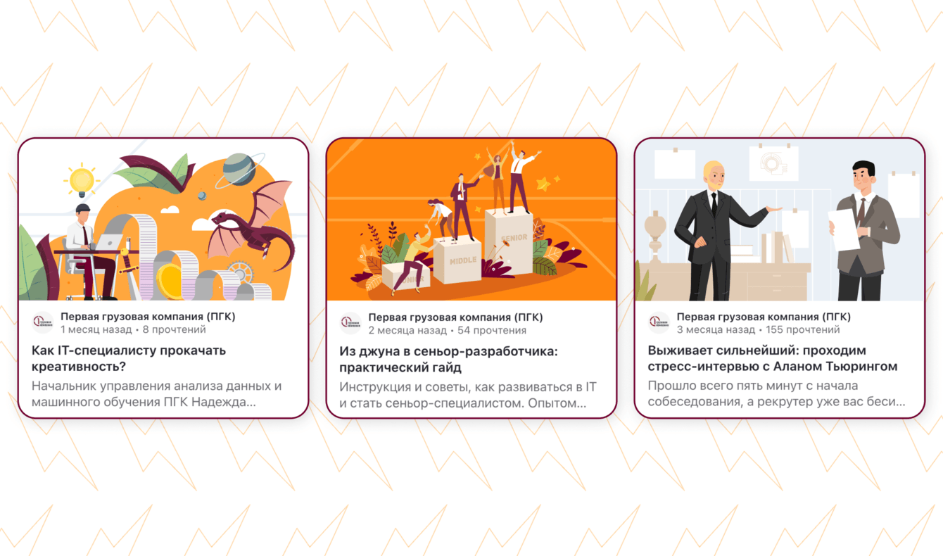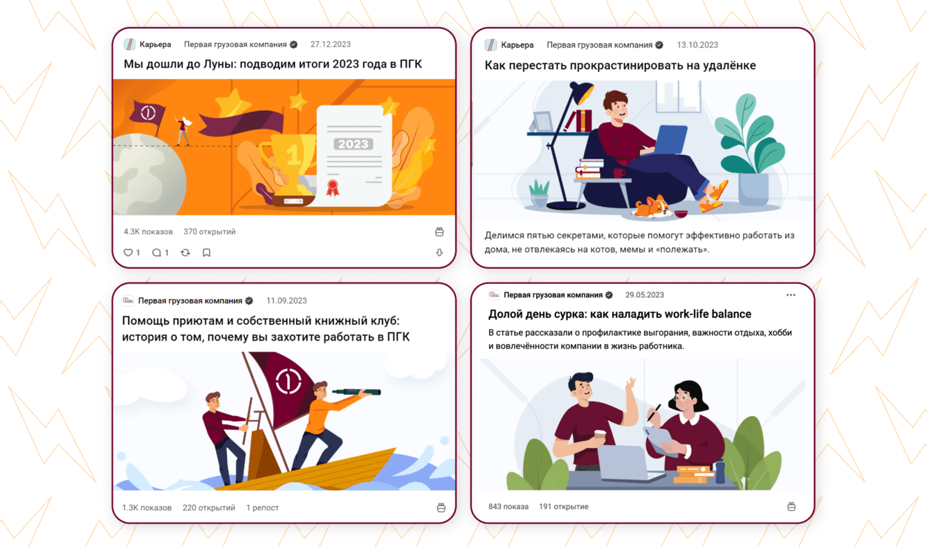 Чтобы максимально ее охватить, блог компании на Дзене решили разделить: команда бюро занималась IT и HR-материалами, а команда ПГК — производственными кейсами, так как была более погружена в специфику логистики.