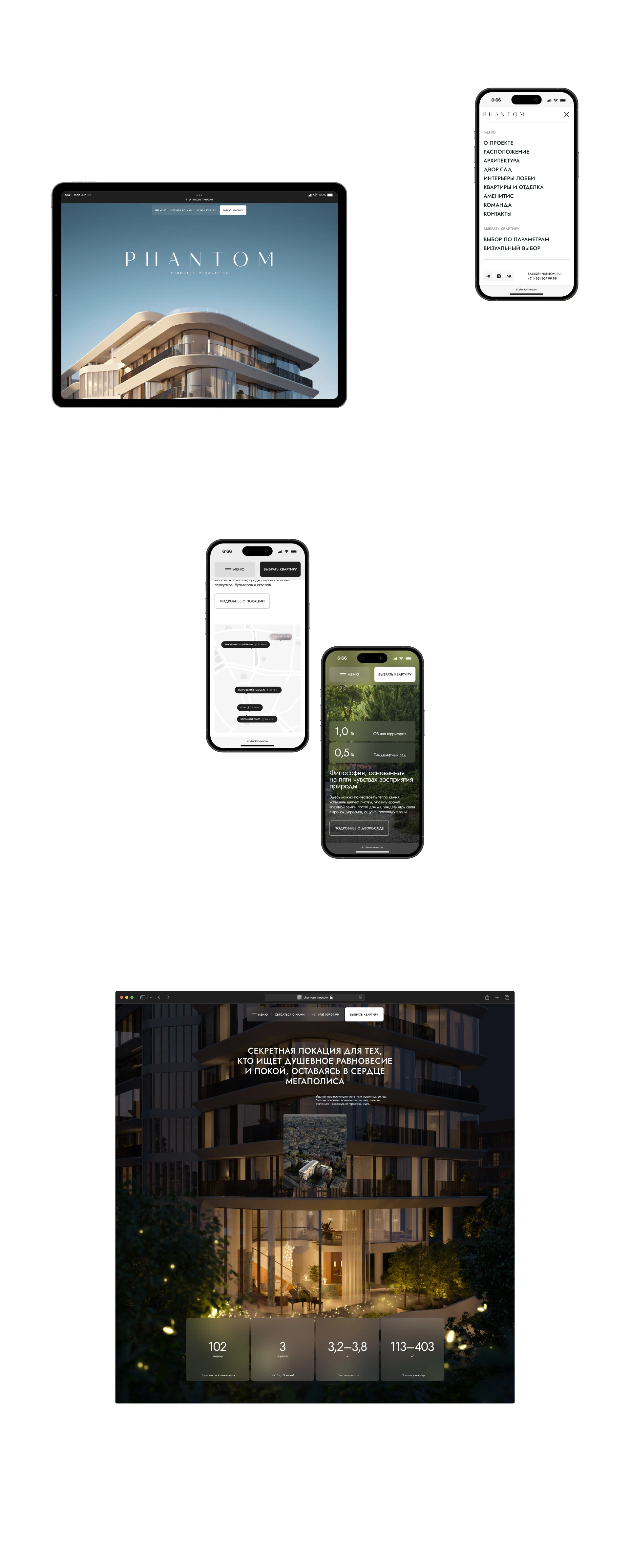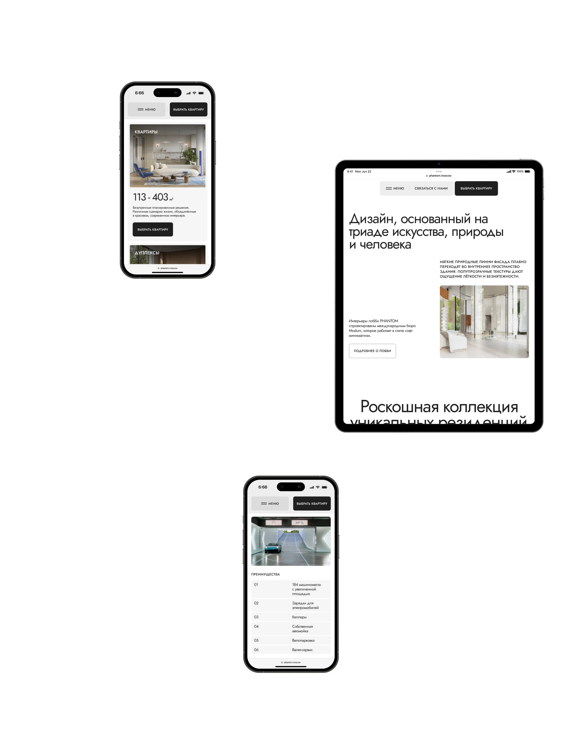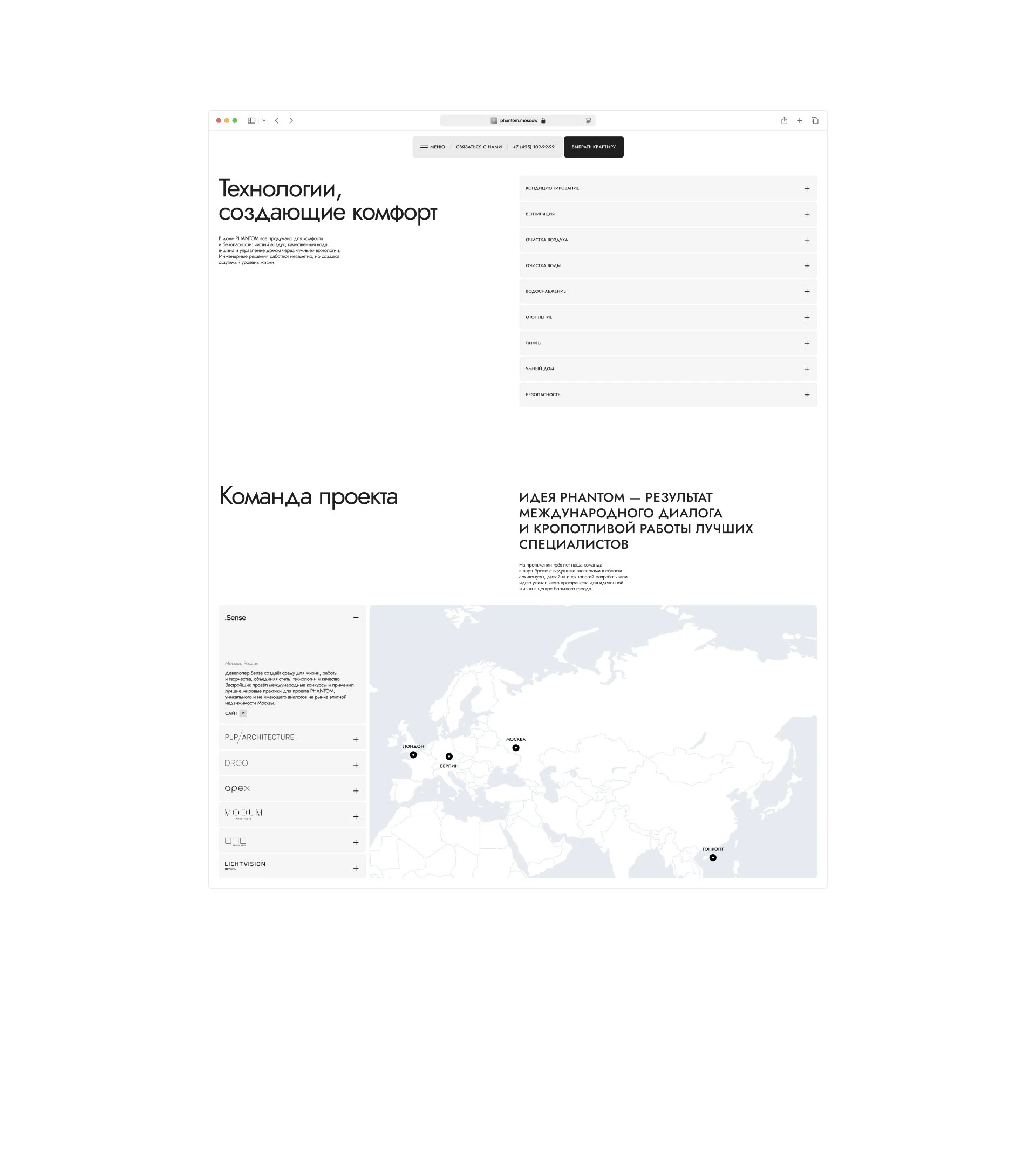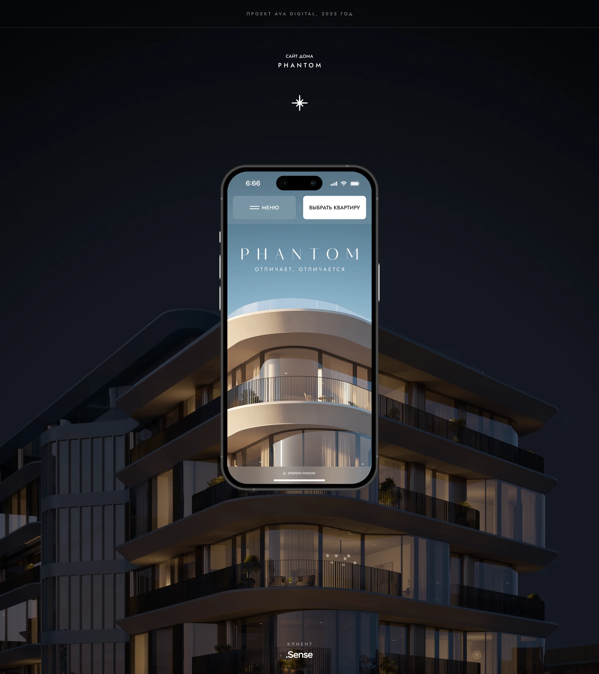 К нам обратился девелопер Sense с задачей создать сайт для нового проекта PHANTOM - клубного дома DELUXE сегмента, призванного стать ориентиром для тех, кто ценит архитектуру за её красоту, силу вдохновлять и способность улучшать будущее Москвы.