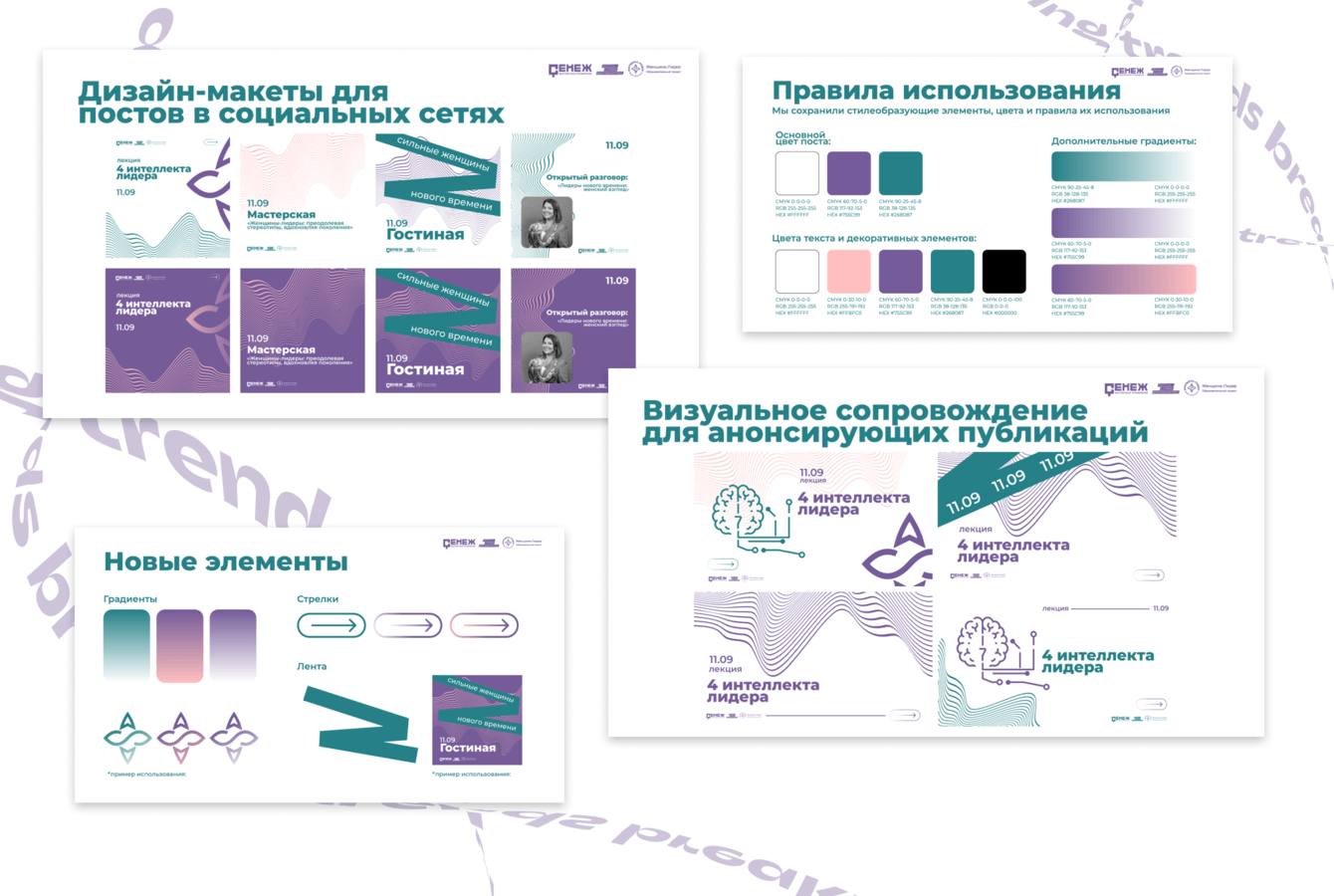 Был разработан логотип, цветовая палитра, набор графических элементов и макеты для всех материалов и постов в социальных сетях, а также оформление для ТВ-программ.