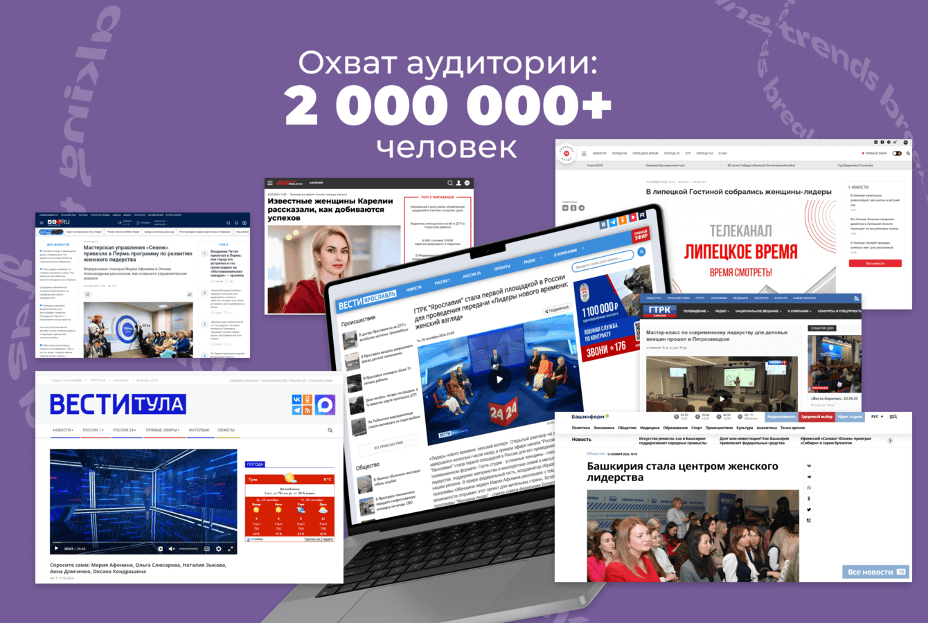 • Провели 10 эфиров тематической программы о женском лидерство вместе с главной героиней проекта клиента на телевидении по всей России с яркими представителями социальной, общественной и политической жизни регионов.