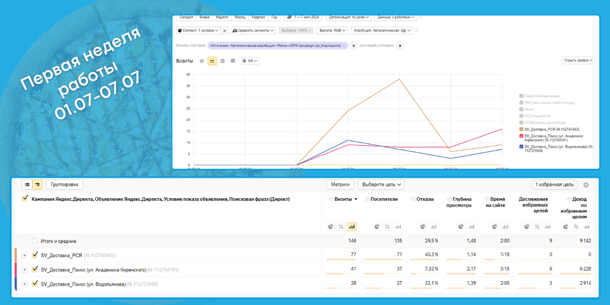 3 июля запустили рекламные кампании, и начали отслеживать эффективность.