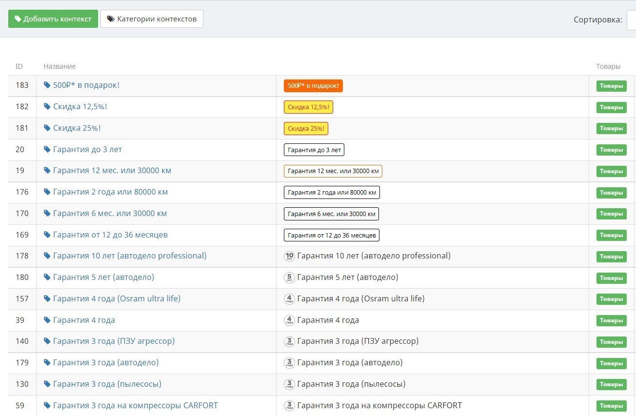 Внутри категорий можно расставлять товары так, как нужно, чтобы они отображались у конечных пользователей интернет-магазина, мобильного приложения или лендинга.