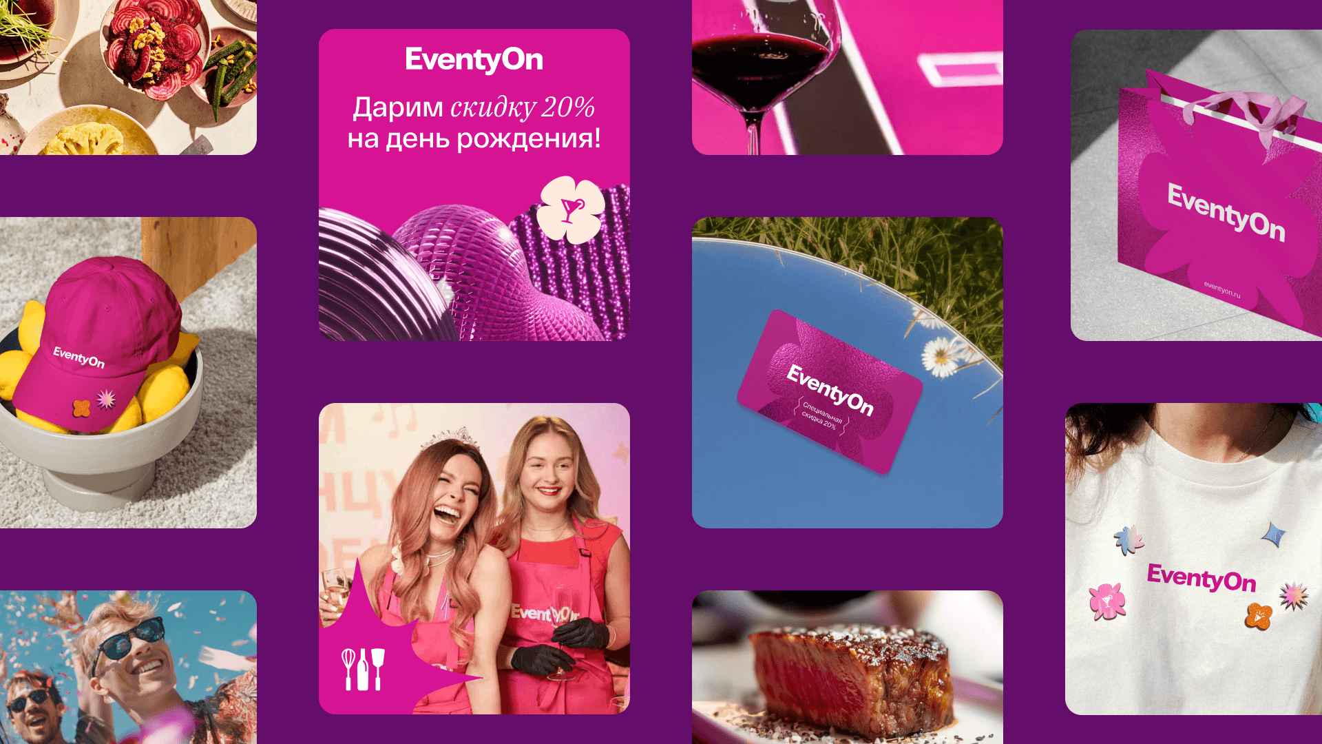 Фотостиль отражает искренние эмоции, моменты веселья и развлечений. Поскольку EventyOn – ивент-компания, которая работает в нескольких направлениях, для каждого предусмотрены свои принципы по подбору цветовой гаммы и тональности. Однако их объединяют характер и эмоции, которые транслирует бренд: неожиданное, яркое, запоминающееся.