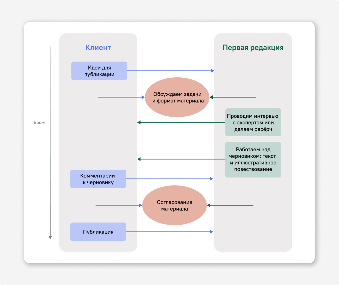 👉 Наладили выпуск материалов. Выстроили устойчивый процесс с понятными этапами согласования.