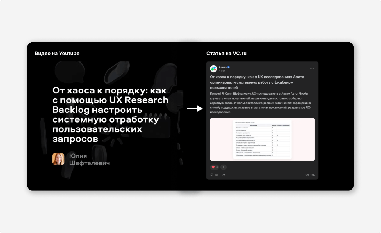 — Статья на VC «От хаоса к порядку: как в UX-исследованиях Авито организовали системную работу с фидбеком пользователей»