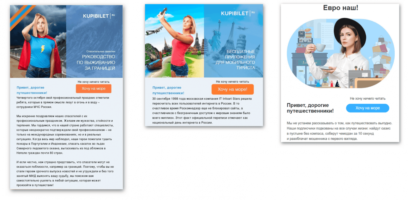 Купибилет — онлайн-агрегатор авиабилетов. Кроме цен и сервиса, их отличает смелость экспериментировать с контентом. Во всяком случае это точно можно сказать о Сергее — маркетологе на стороне Купибилета, с которым мы делали письма.