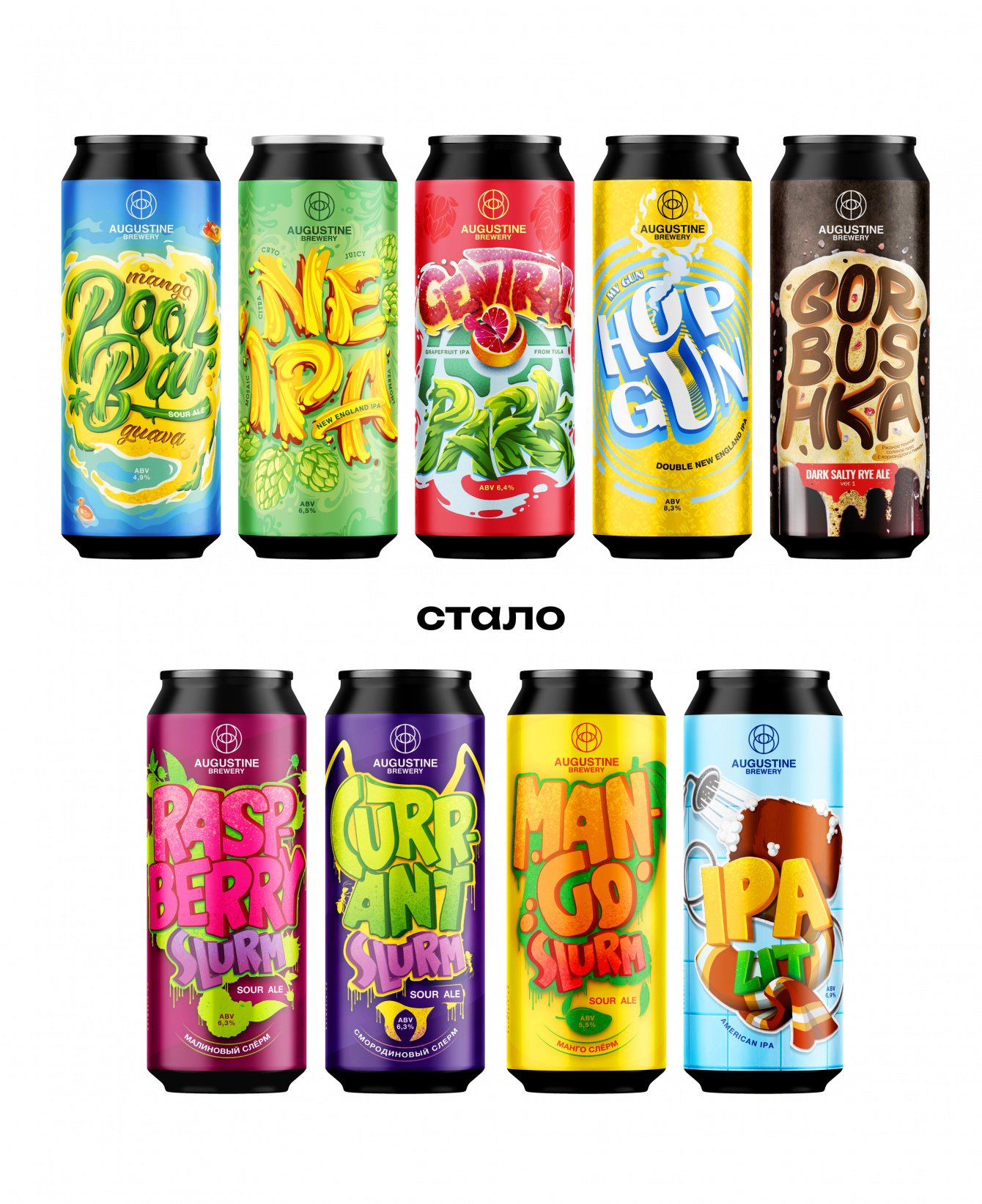 Структура дизайна каждой этикетки построена таким образом, что при первом взгляде на полку с продукцией, покупатель понимает одну очень важную деталь - все сорта пива относятся к одному производителю.