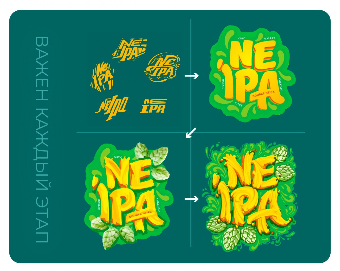 Касаемо упаковки – было принято решение за основу для каждой этикетки взять шрифтовую иллюстрацию. Тем самым планировалось достижение уникальности каждого SKU у производителя.