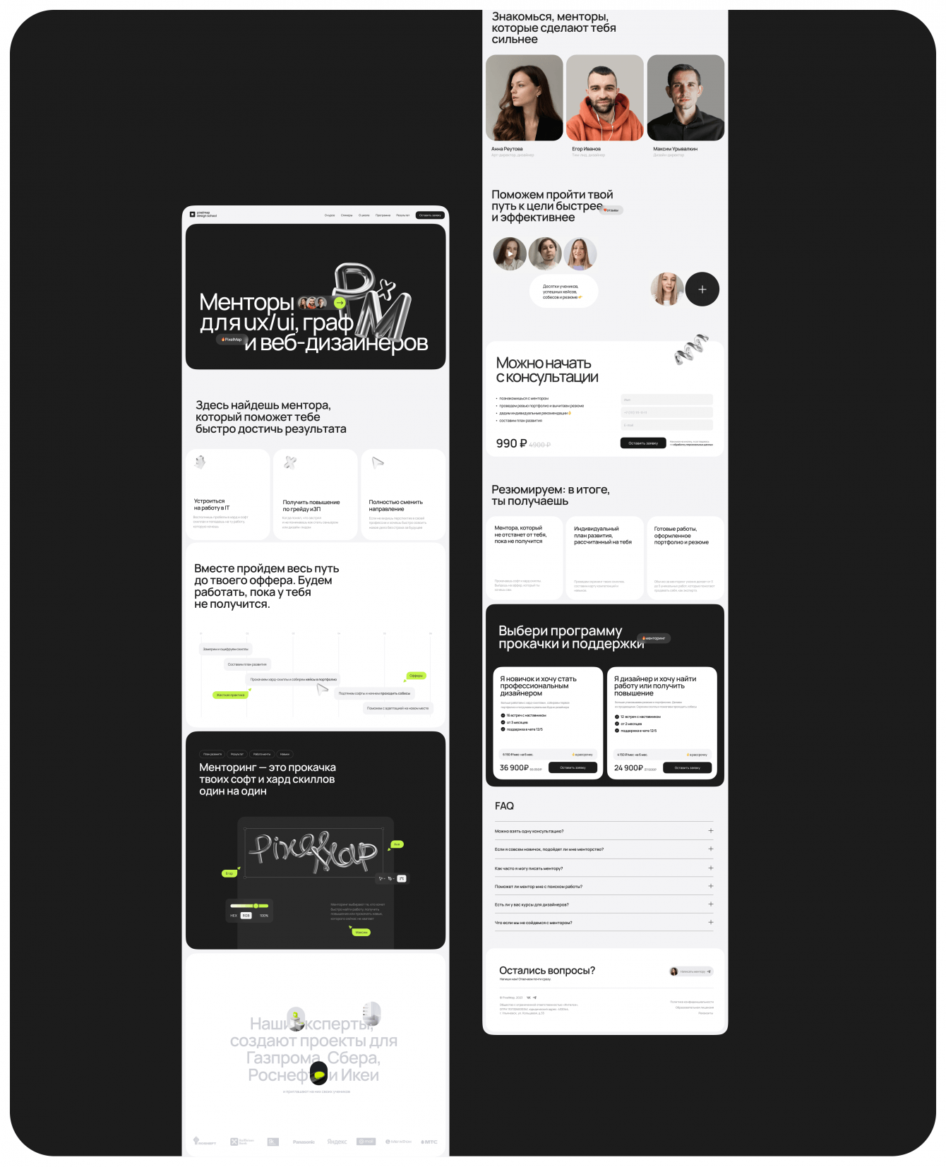 Дизайн сайта (https://pixel-map.ru/mentoring#rec609475579) попал в подборку лучших работ по версии тильда и получил оценку дизайн сообществом на dprofile.ru (получил отметку за отличный UI).