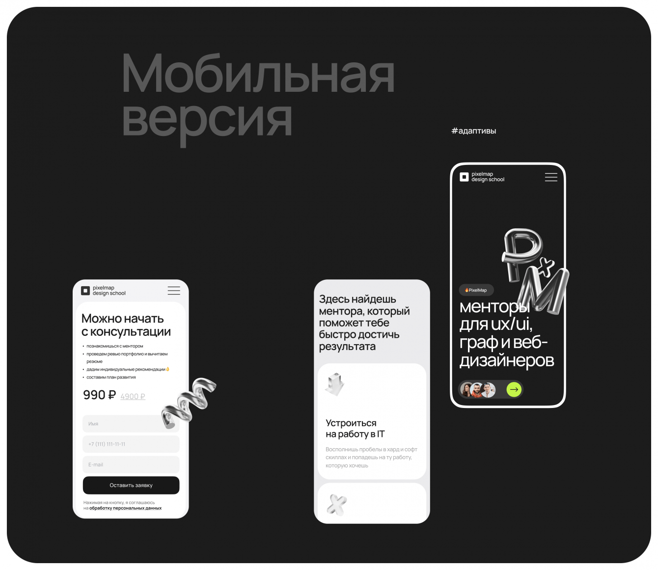 Дизайн сайта (https://pixel-map.ru/mentoring#rec609475579) попал в подборку лучших работ по версии тильда и получил оценку дизайн сообществом на dprofile.ru (получил отметку за отличный UI).