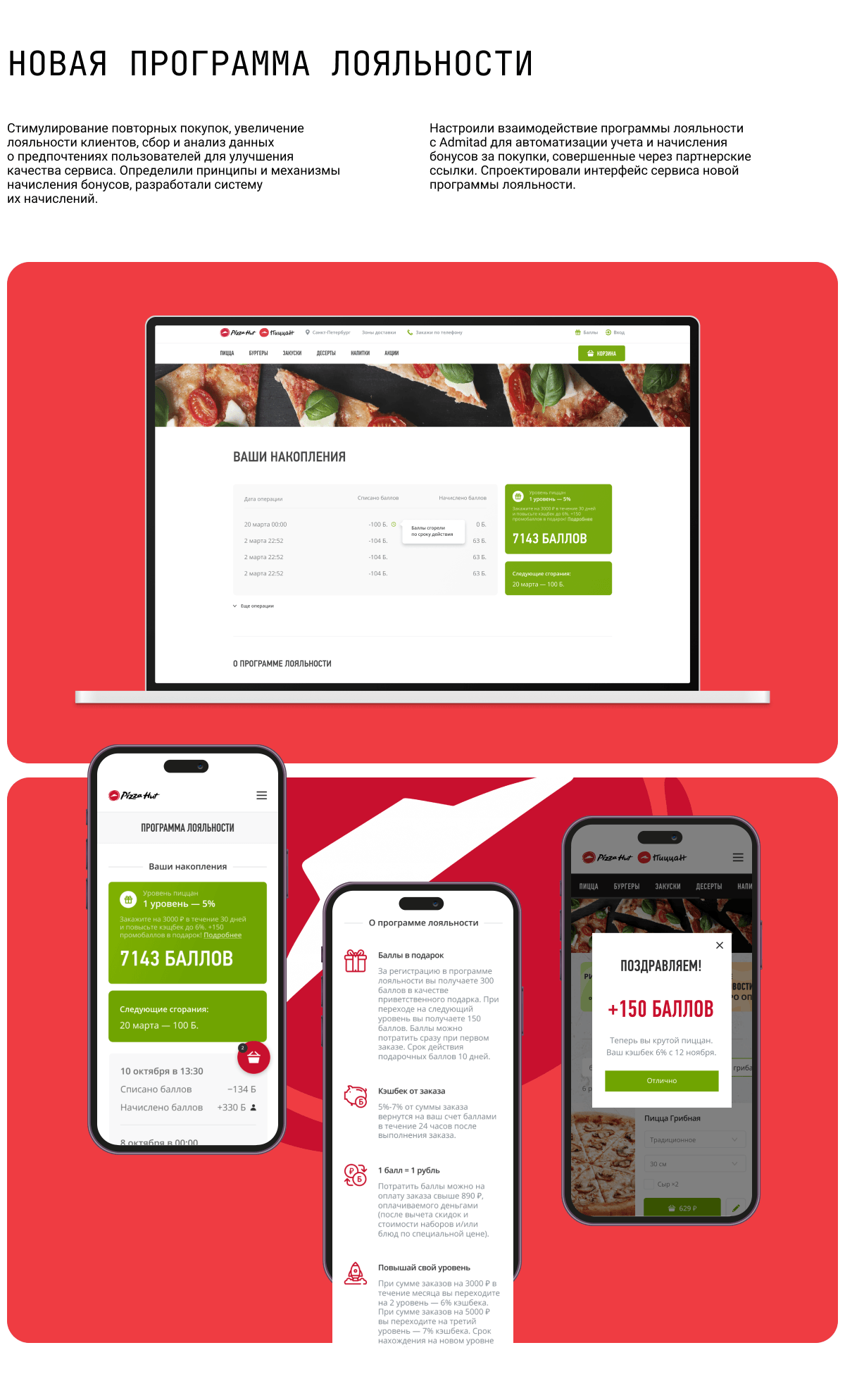 1. Создание более привлекательного и современного интерфейса сайтов, улучшение пользовательского опыта, сохранение фирменного стиля Pizza Hut.