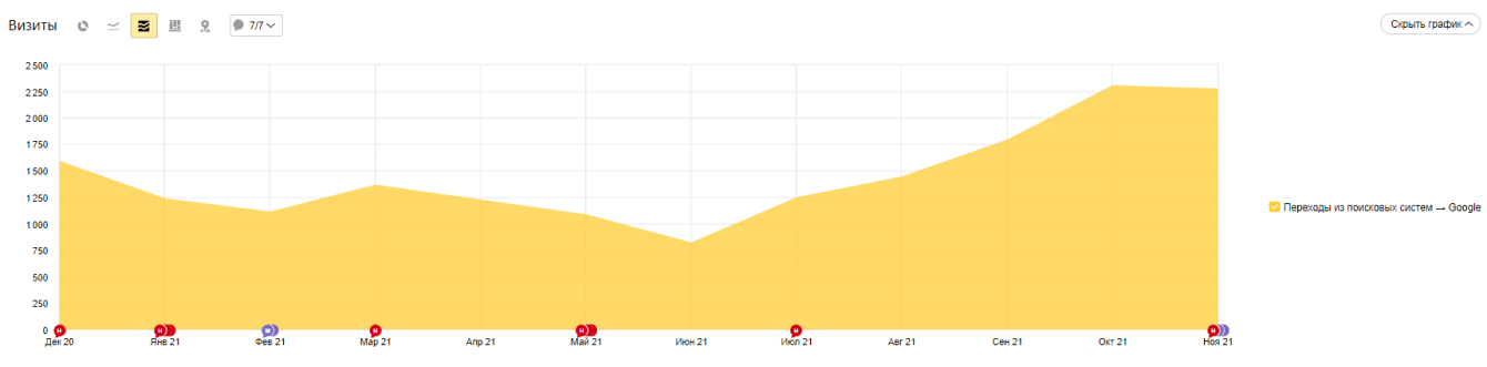 Поисковый трафик из Google вырос до 2 000 визитов в месяц к октябрю 2021 года.