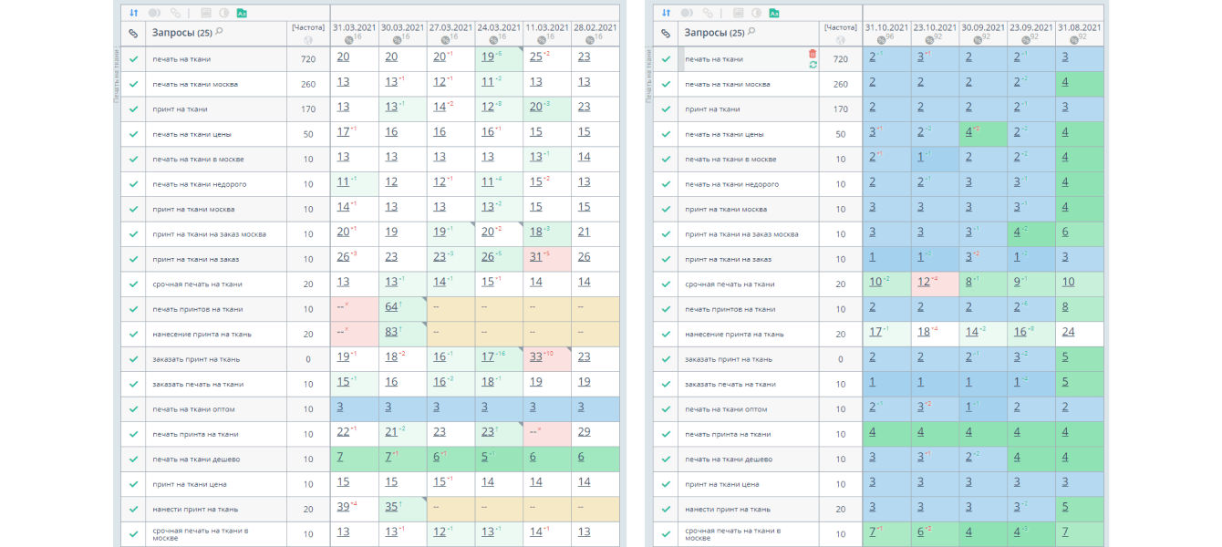 Основное направление - печать на ткани, поэтому сконцентрировались на продвижении этой группы запросов в первую очередь.