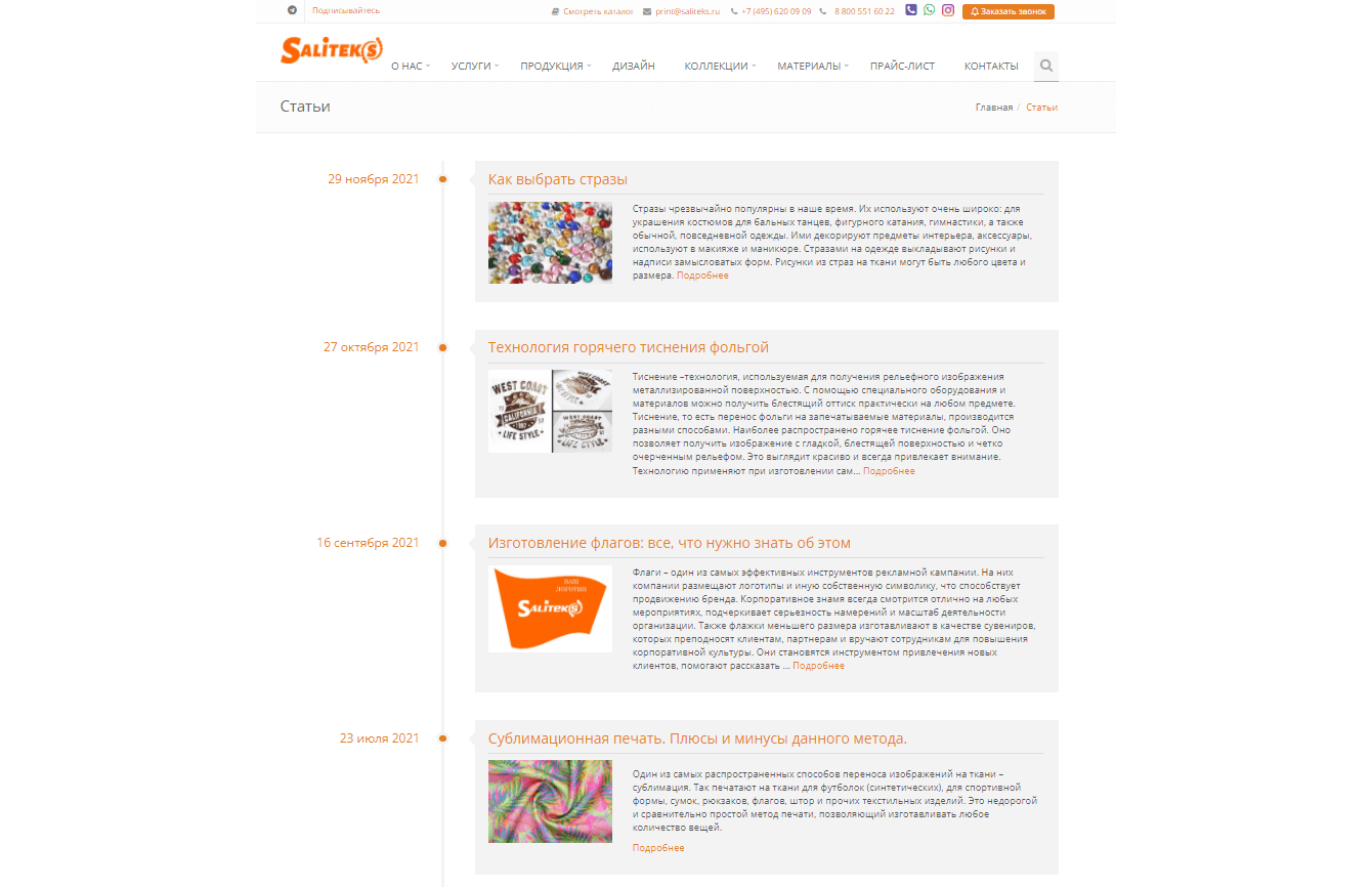 Компания «Салитекс» выражает признательность Студии «Линкор» за долгое плодотворное сотрудничество. В 2017 году мы обратились за разработкой нового сайта и дальнейшего его продвижения. Сайт сделали достаточно быстро и качественно, в соответствии с нашими требованиями и на основе конкурентного анализа, были учтены все нюансы в сфере полиграфии и печати и наши приоритеты.