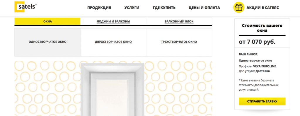 Мы не упомянули про такой важный для оконного сайта модуля, как калькулятор. Он продумывался как со стороны руководства, так и со стороны маркетинга. Мы хотели сделать нечто простое, но в тоже время функциональное. В итоге получился сервис, позволяющий рассчитать стандартное одностворчатое, двухстворчатое, трехстворчатое окно или балконный блок в различном профиле.