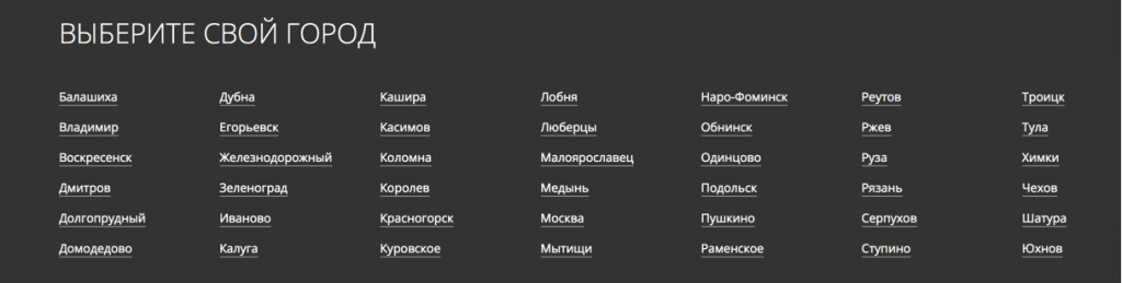 Сайт позволял создавать новый региональный поддомен в 2 клика, с этой задачей мог справиться даже ребенок. Мы сознательно отошли от 100% разного контента на поддоменах в силу предстоящих больших затрат по администрированию всей платформы. Для SEO-продвижения было решено реализовать точечные механизмы уникализации текстов – сделали вхождение в заголовки Н1-Н6 и тексты вход названия города или области. К примеру, если поддомен посвящен Реутову, в тексте был заголовок «Пластиковые окна в Реутове».