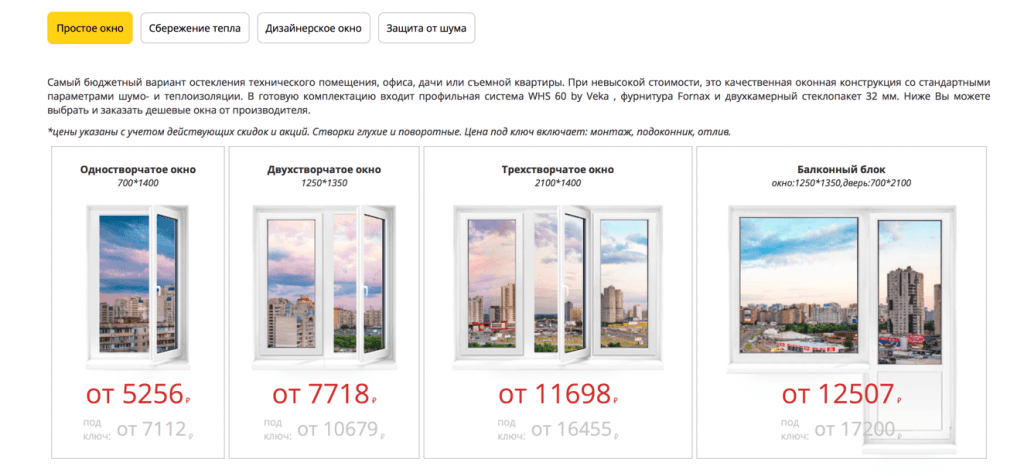 В окнах есть понятие ширины профиля – это ключевой элемент окна, от которого зависит теплосбережение и шумоизоляция будущей конструкции. Сознание потребителя сводится к покупке окна на низкой цене, но за минимальные деньги по-настоящему теплое, не шумное окно купить невозможно. Модуль «Сравнение окон» должен был показать покупателю истинную картину вещей.