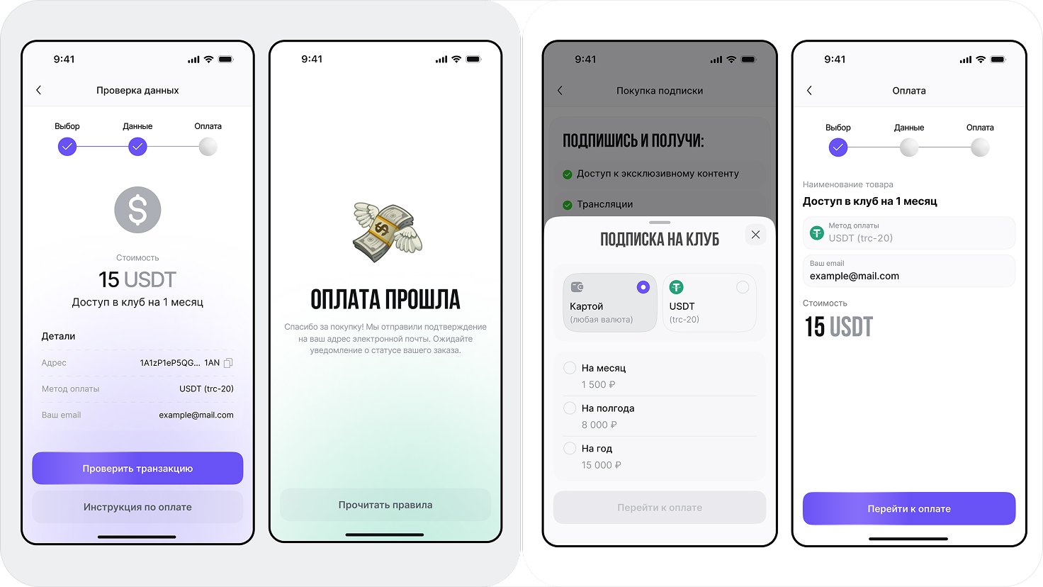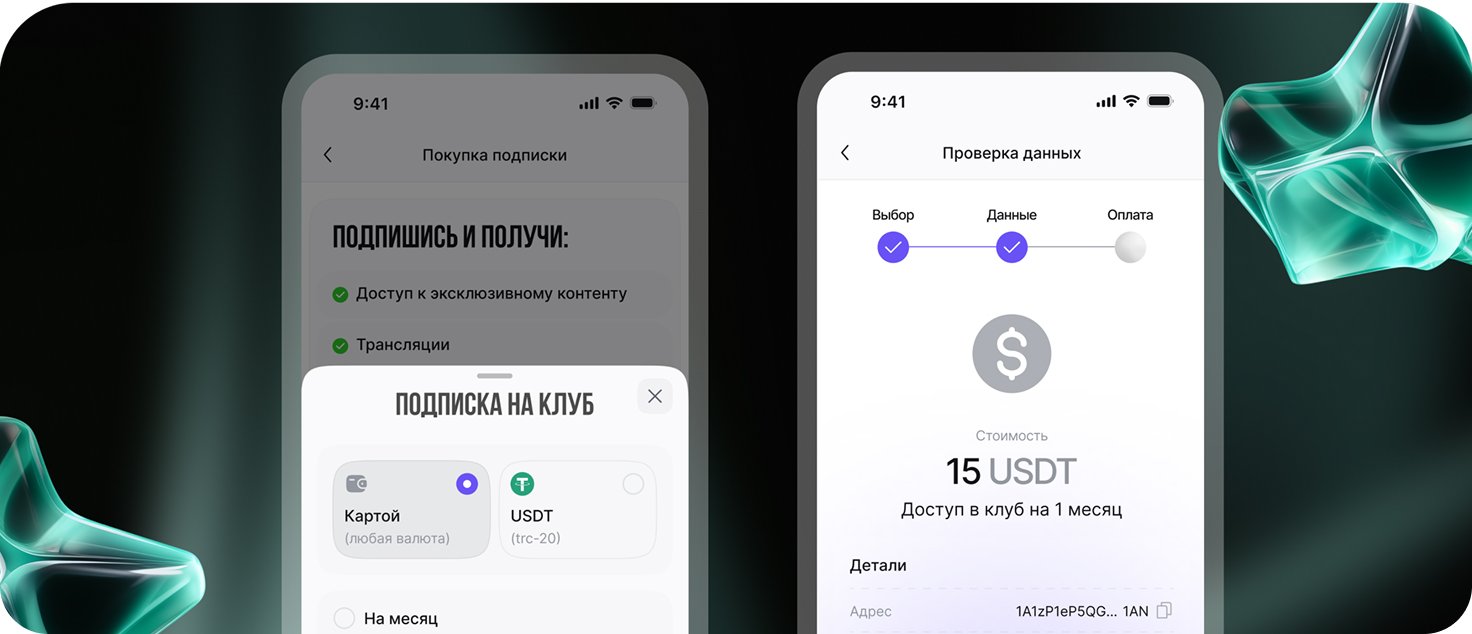 Это единая форма оплаты, через которую пользователь за секунды оформляет вступление или продление подписки, выбирает тариф и мгновенно получает доступ в приложение.