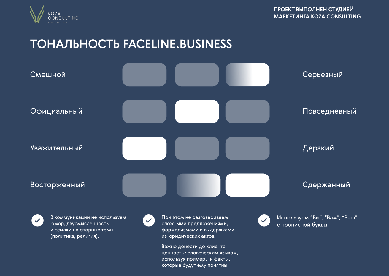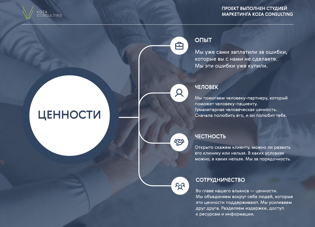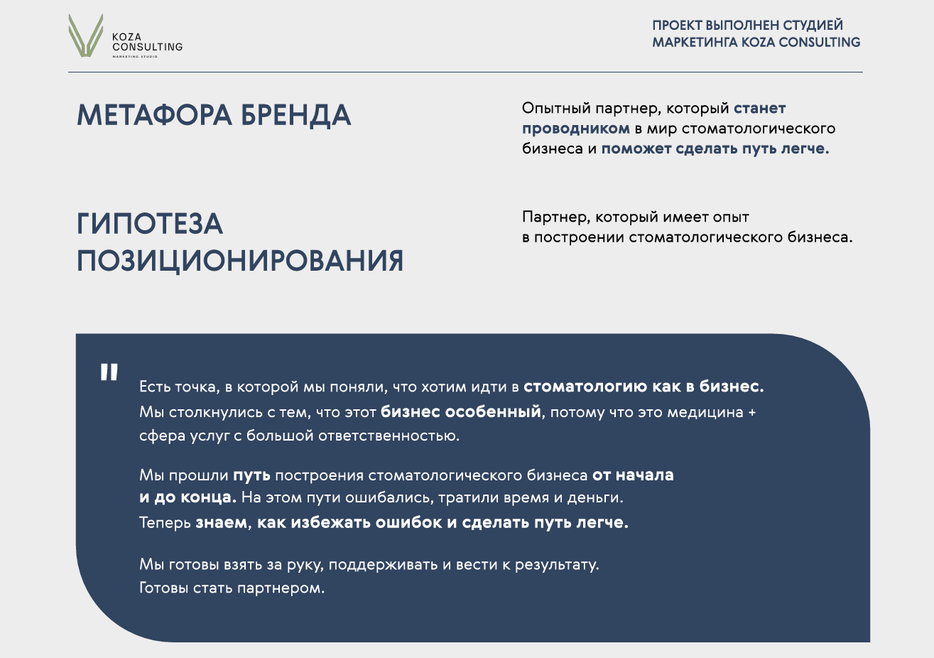 Исходя из задач клиента разработали позиционирование бренда на рынке, описали все составляющие платформы бренда и продуктовую линейку клиники.