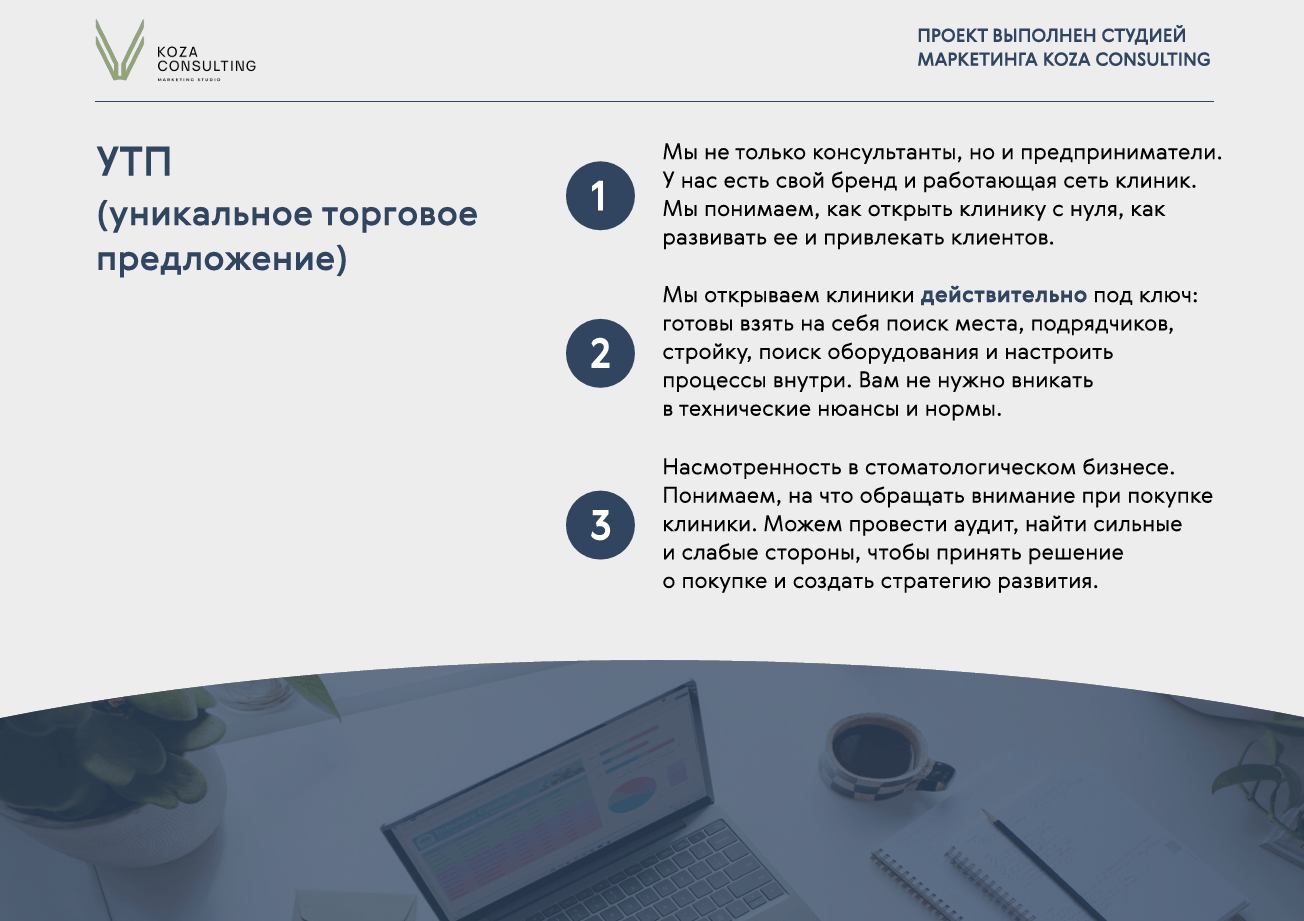 После оформили продающую презентацию, посредством которой упаковали бизнес для старта продаж.