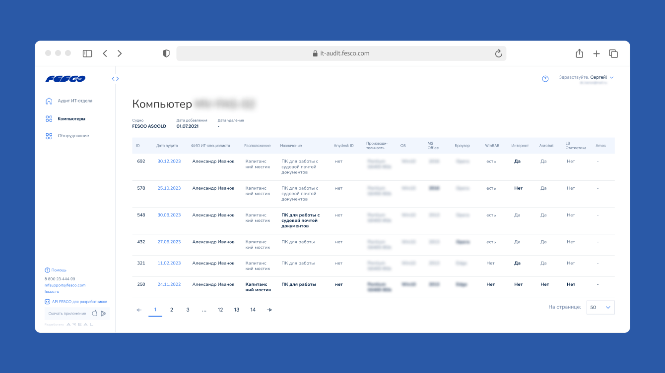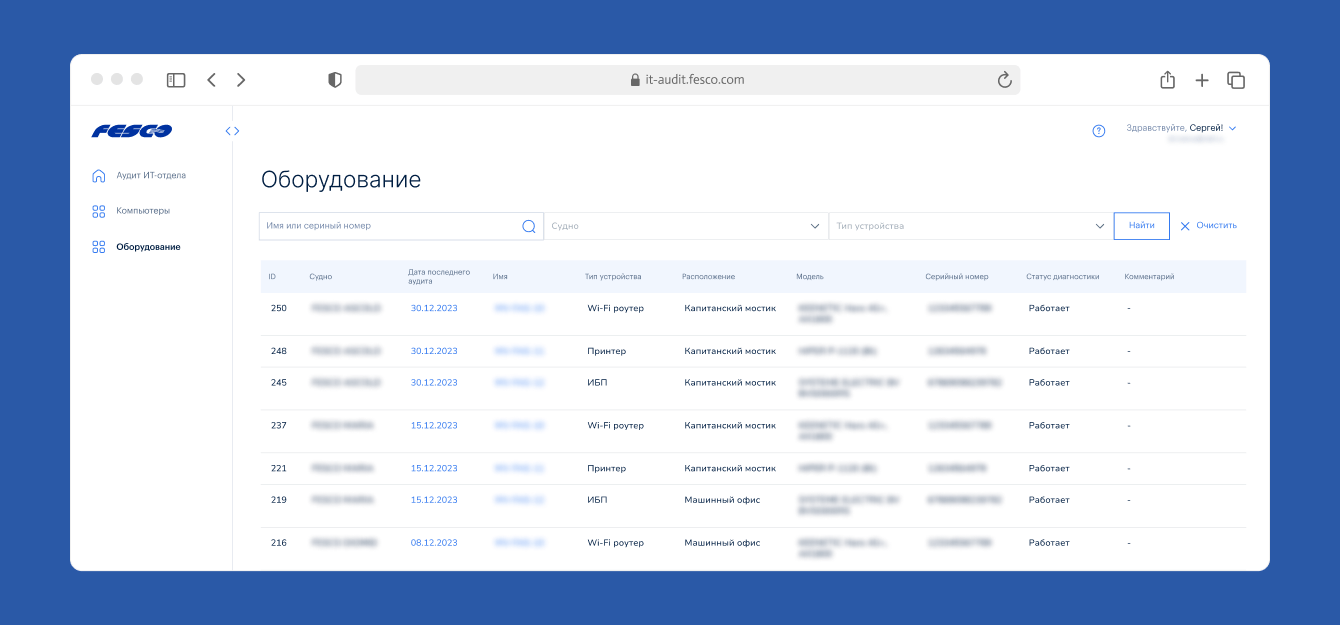 Проект облегчил процесс ИТ-аудита судов FESCO. Теперь проверки проводятся быстрее и системнее, а данные — всегда под рукой у специалистов и руководства. Работа офлайн обеспечивает аудит даже в удалённых портах, а единая база оборудования формирует технологическую картину состояния судна.