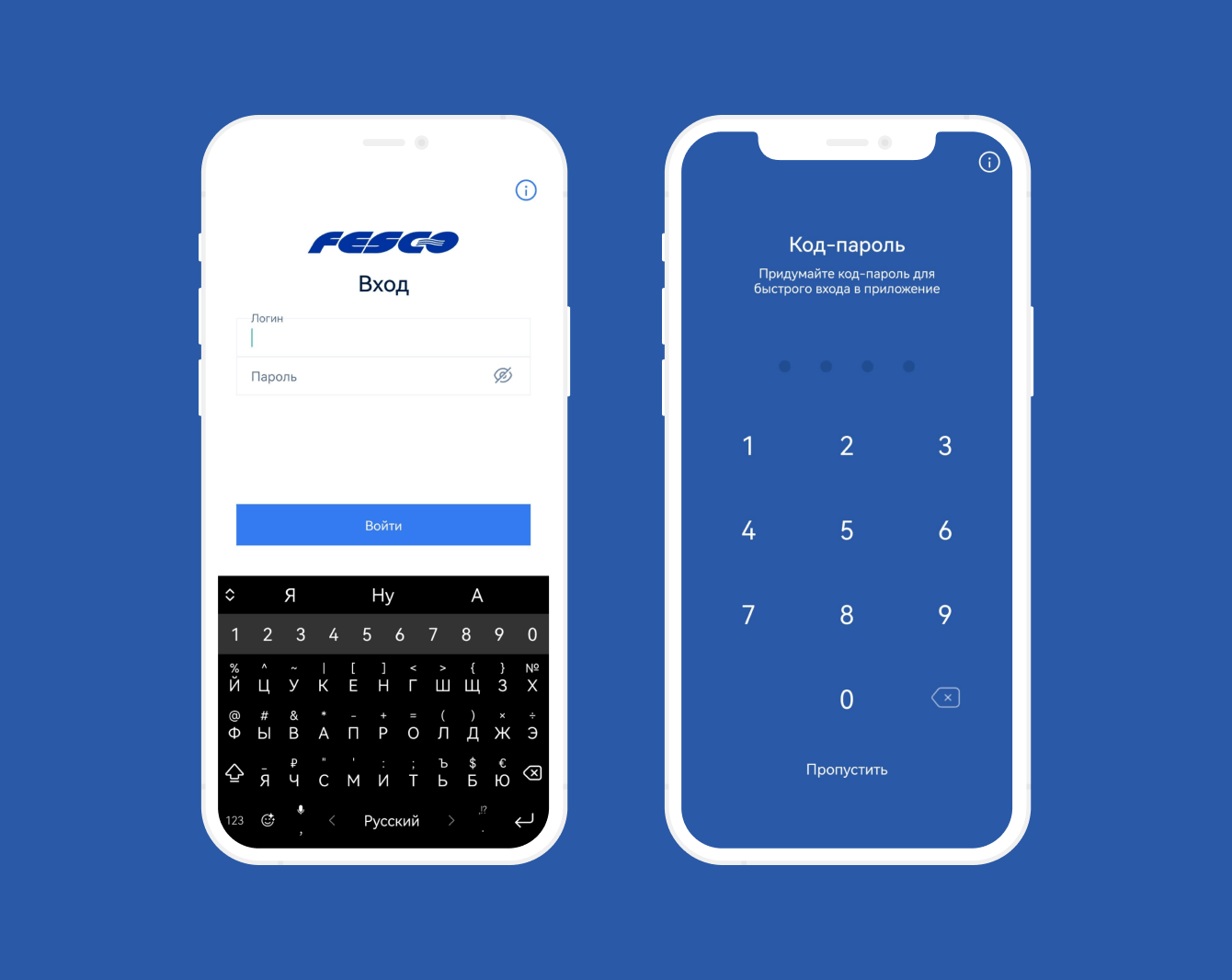 По прибытии судна на стоянку работа перемещается в мобильное приложение. Авторизация реализована по логину и паролю. Для удобства можно установить код-пароль или вход по отпечатку пальца.