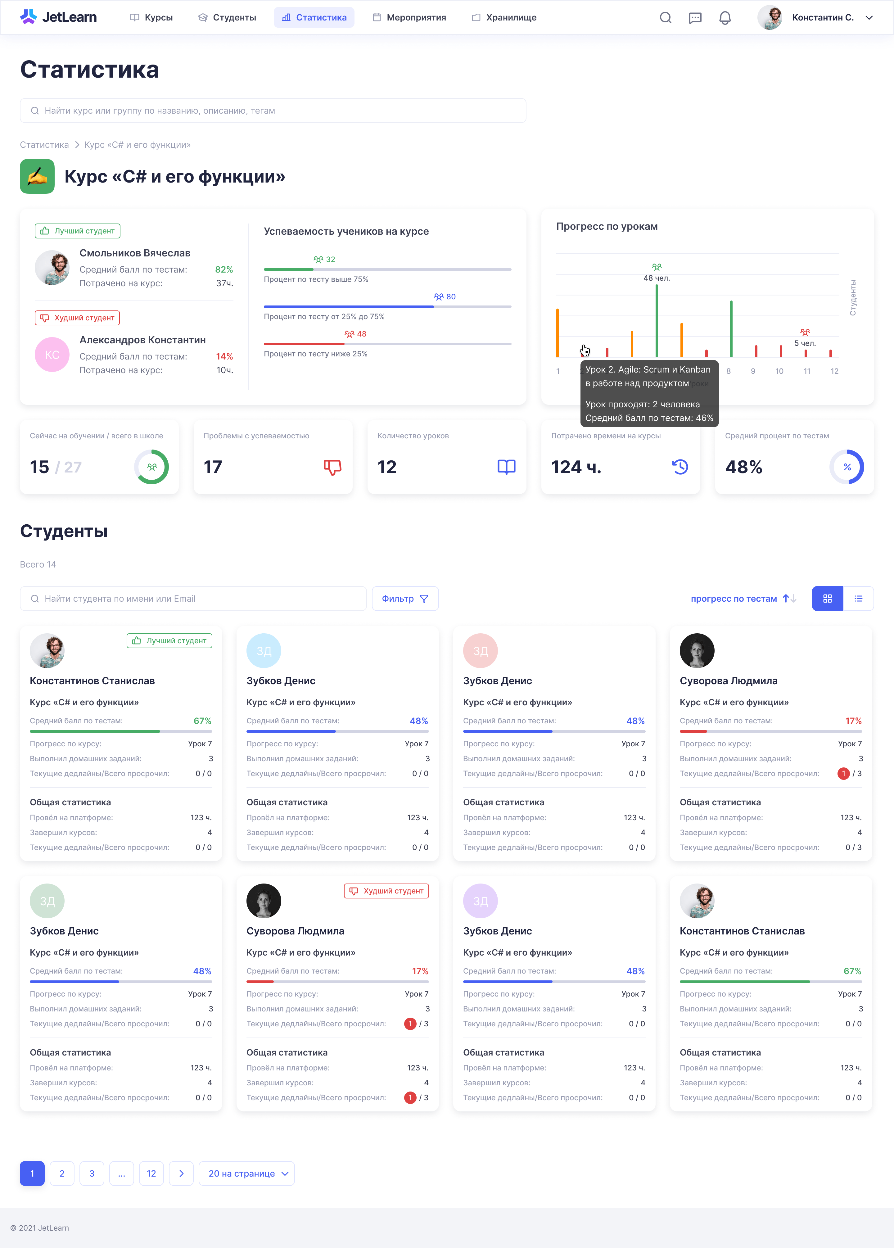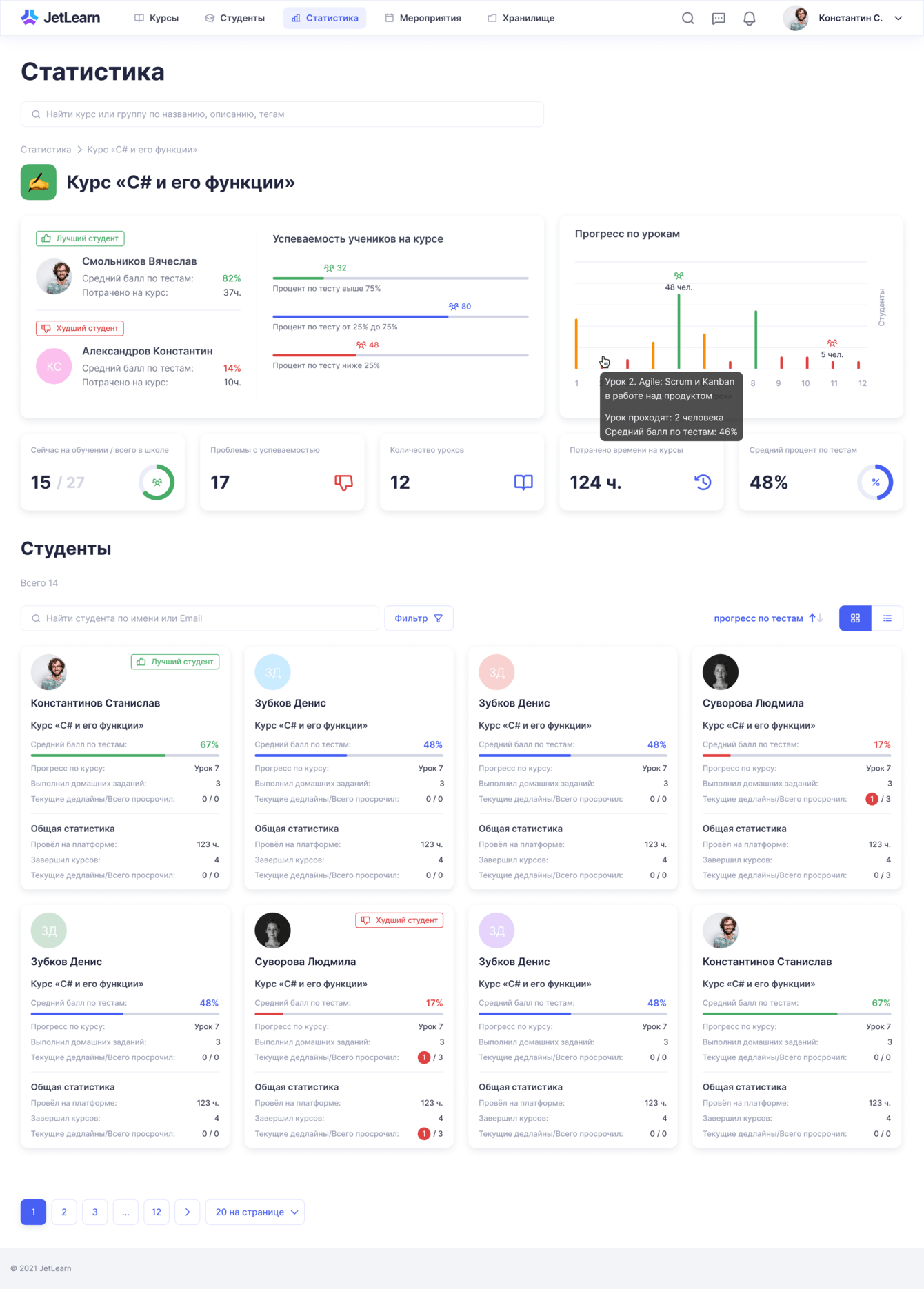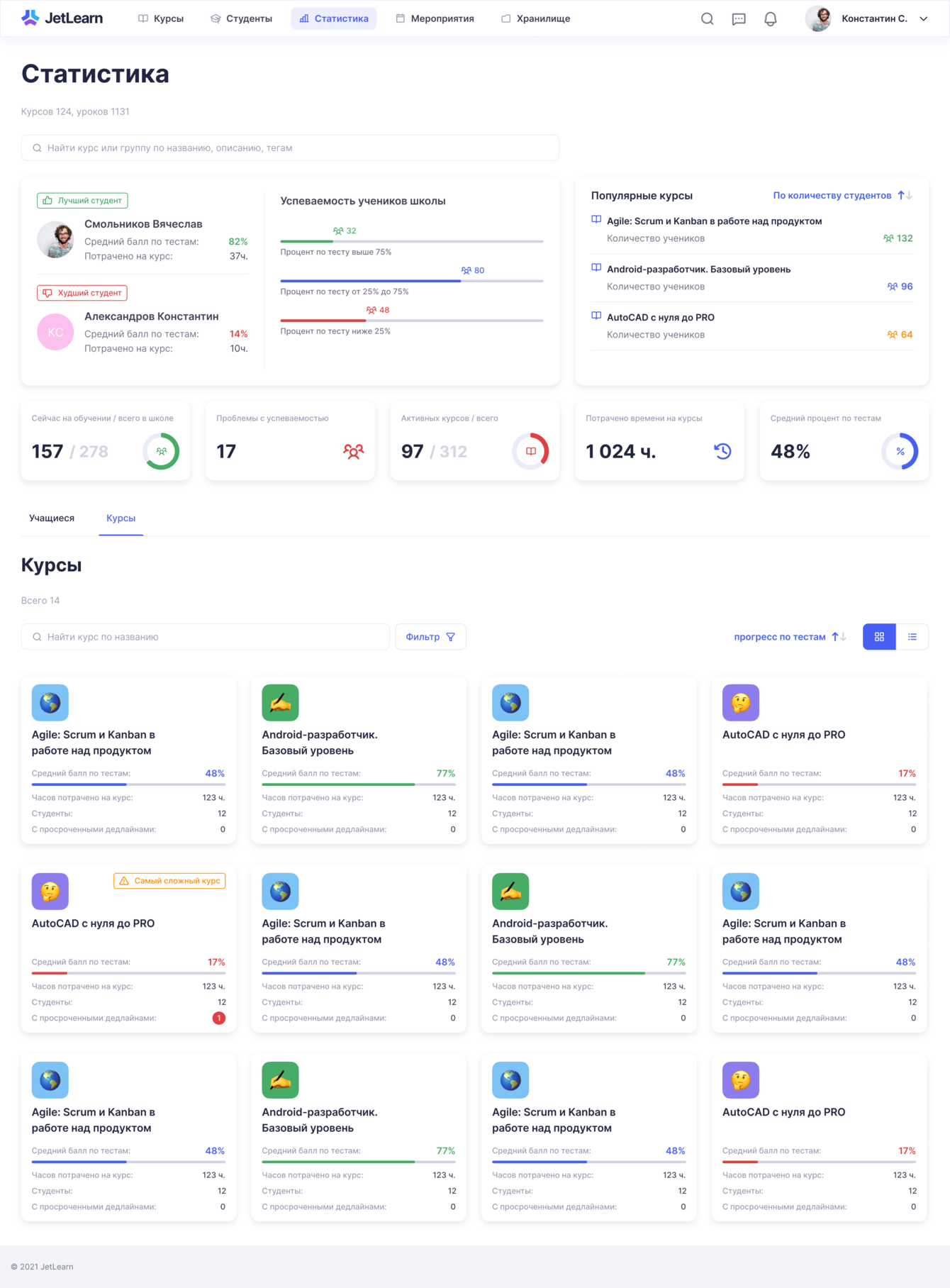 Статистика по школе: список курсов