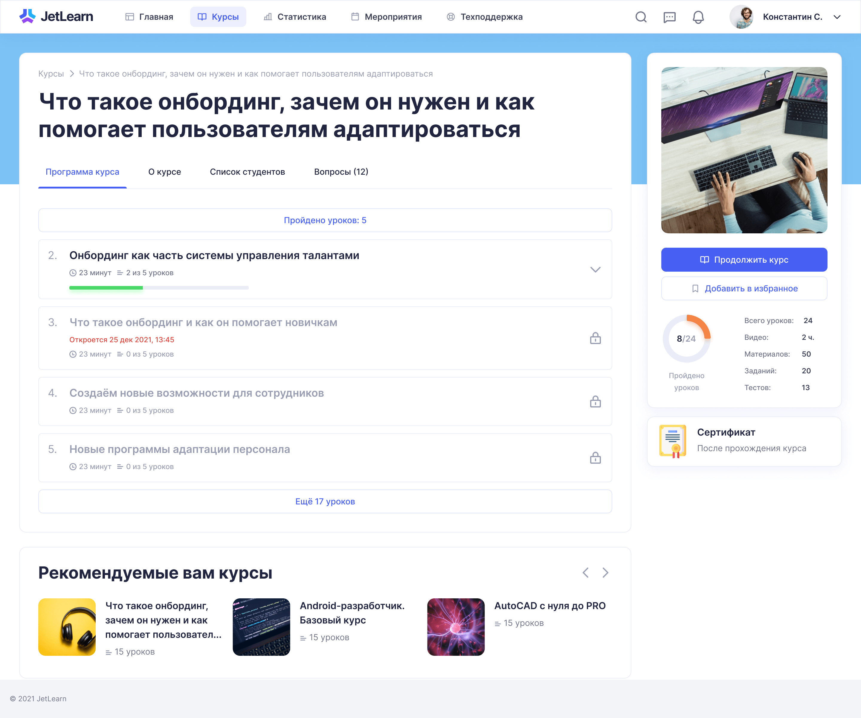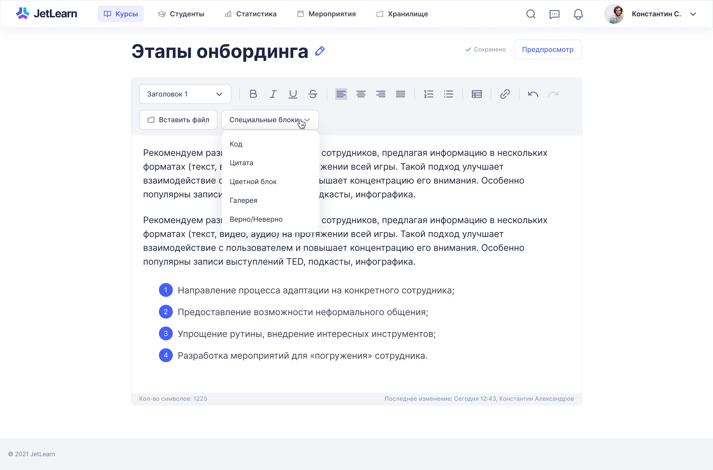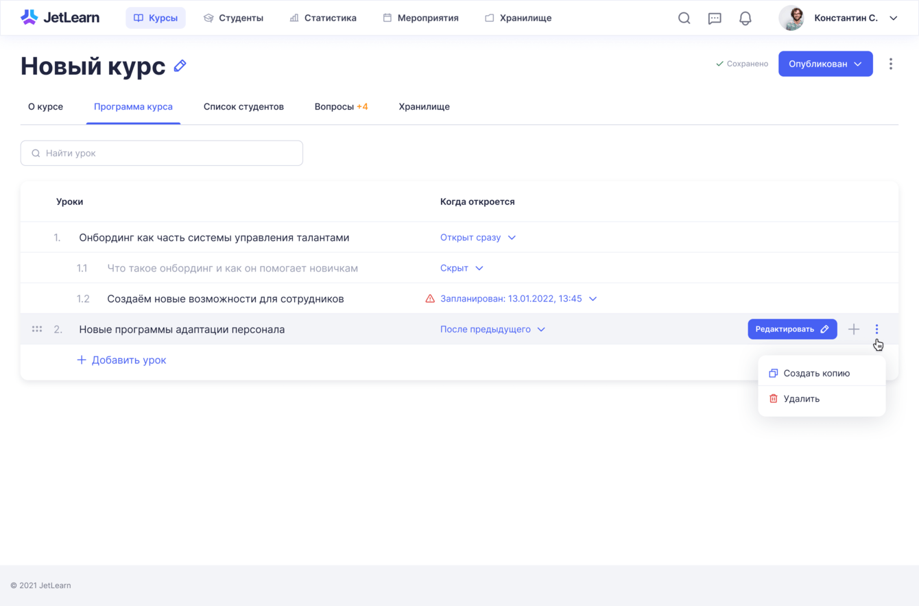 Создание курса: онбординг