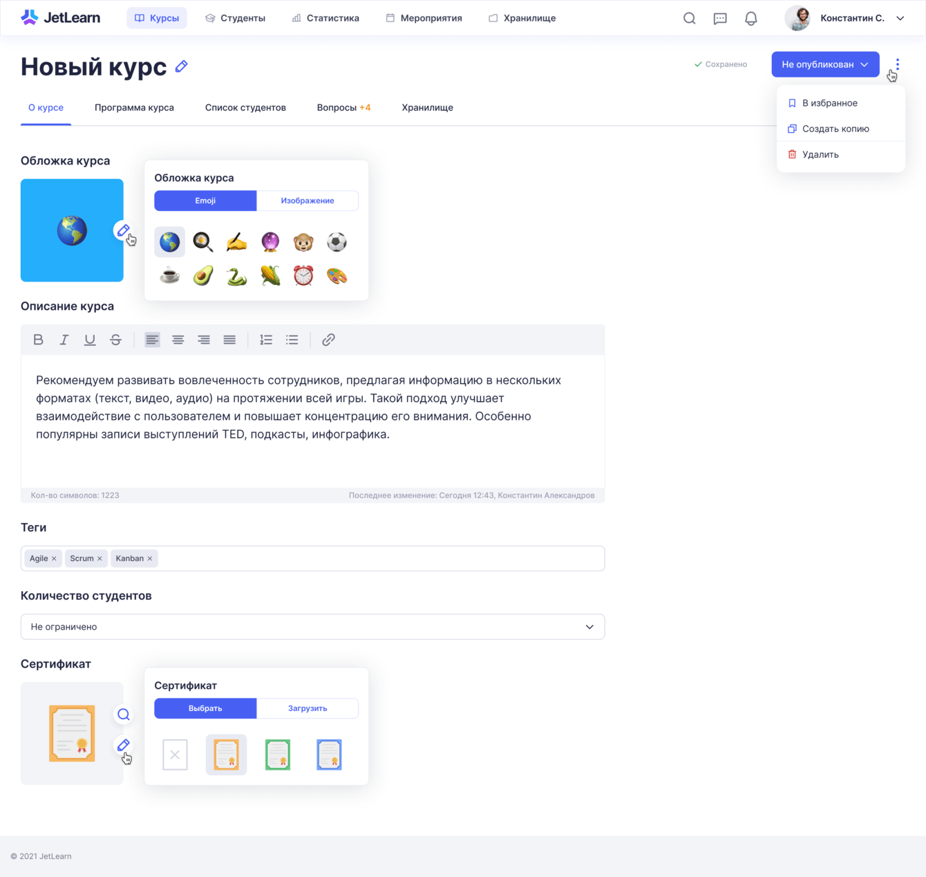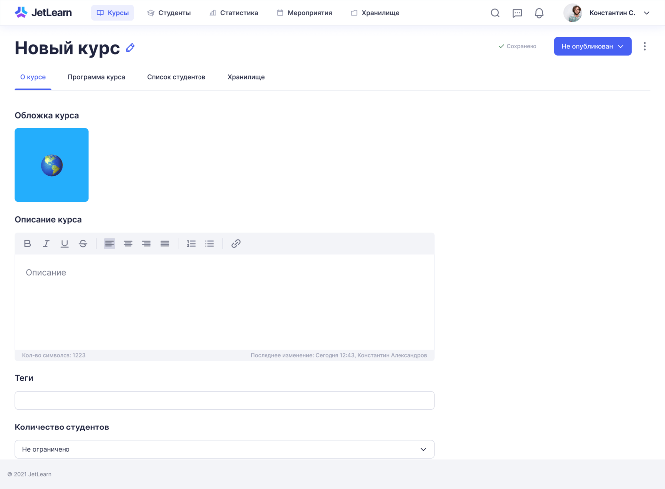 Создание курса: о курсе