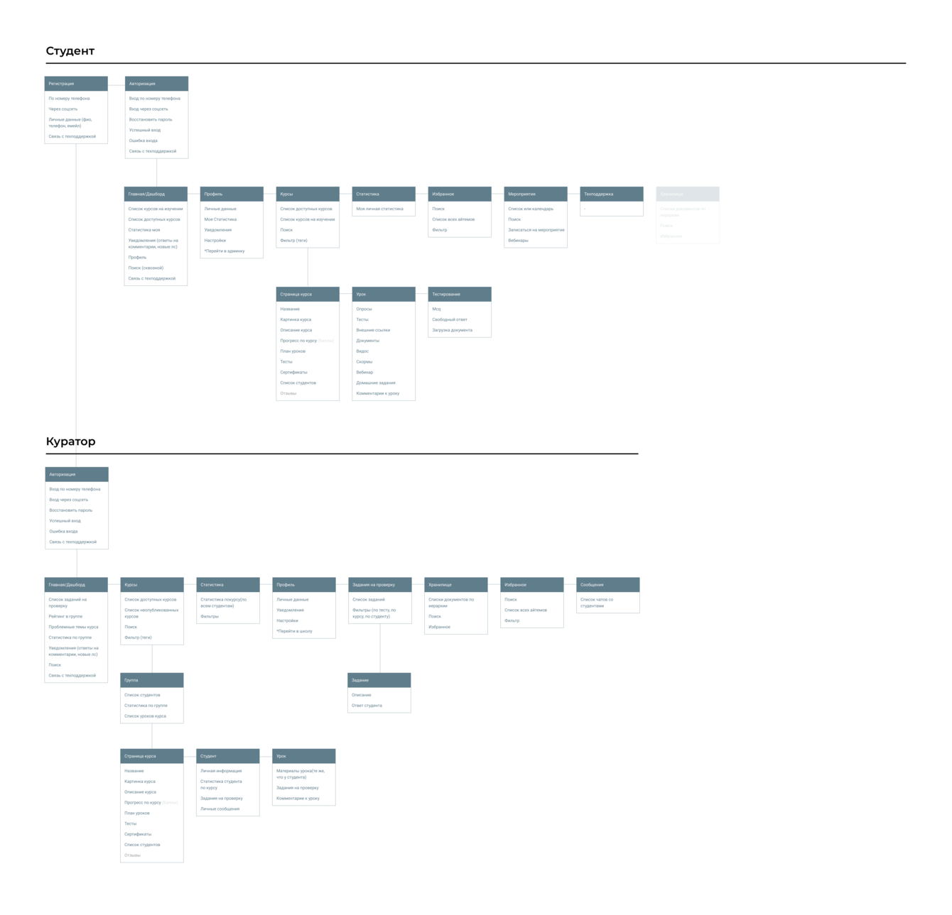 Отрисовать макеты интерфейса образовательной платформы с учетом основных сценариев трех типов пользователей: