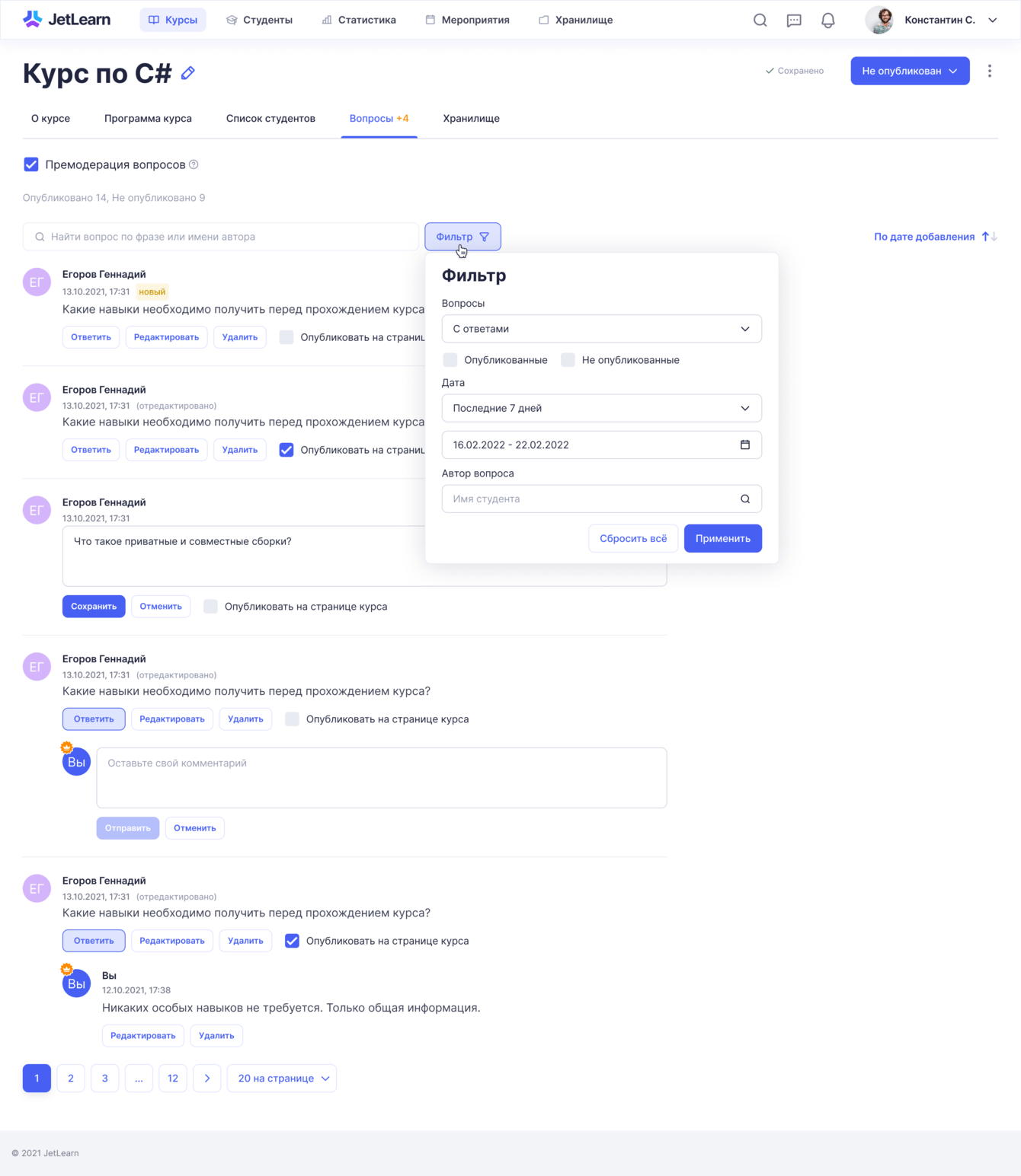 Создание курса. Вопросы