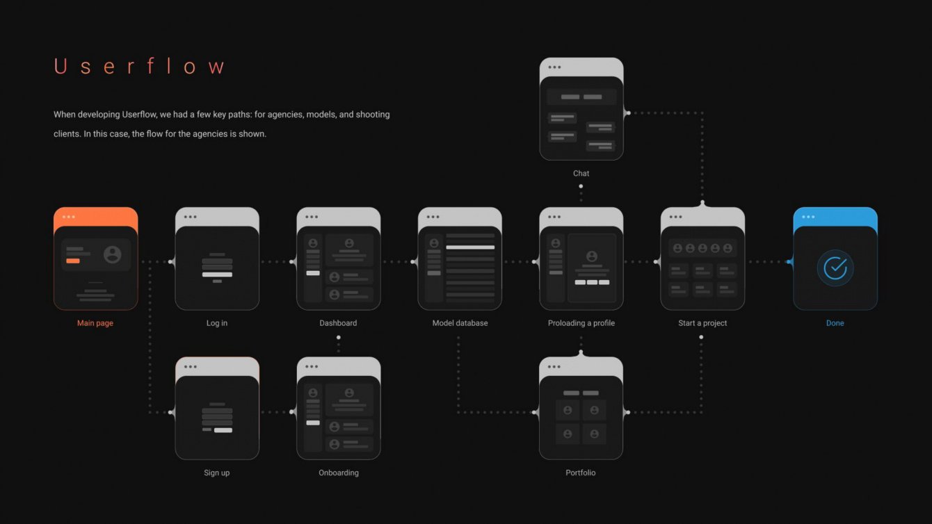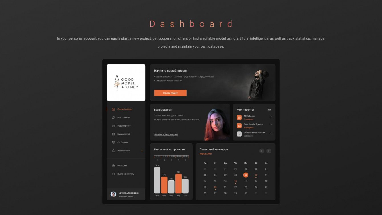 Разработка дизайна для управления модельным бизнесом с респонсивным и интуитивным интерфейсом и тремя разными юзер-флоу для разных типов пользователей.