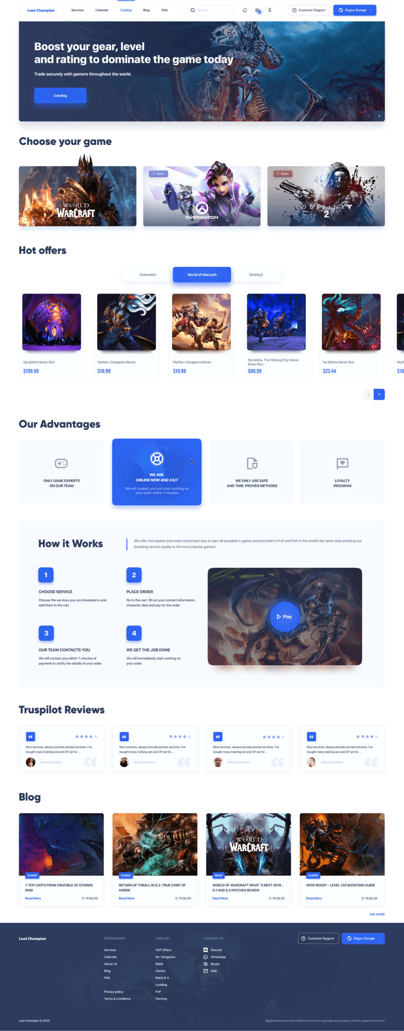 Мы реализовали платформу для продажи игровых сервисов, услуг по обучению и прокачке персонажей, с возможностью онлайн-оплаты различными валютами и выбором региона присутствия пользователя.