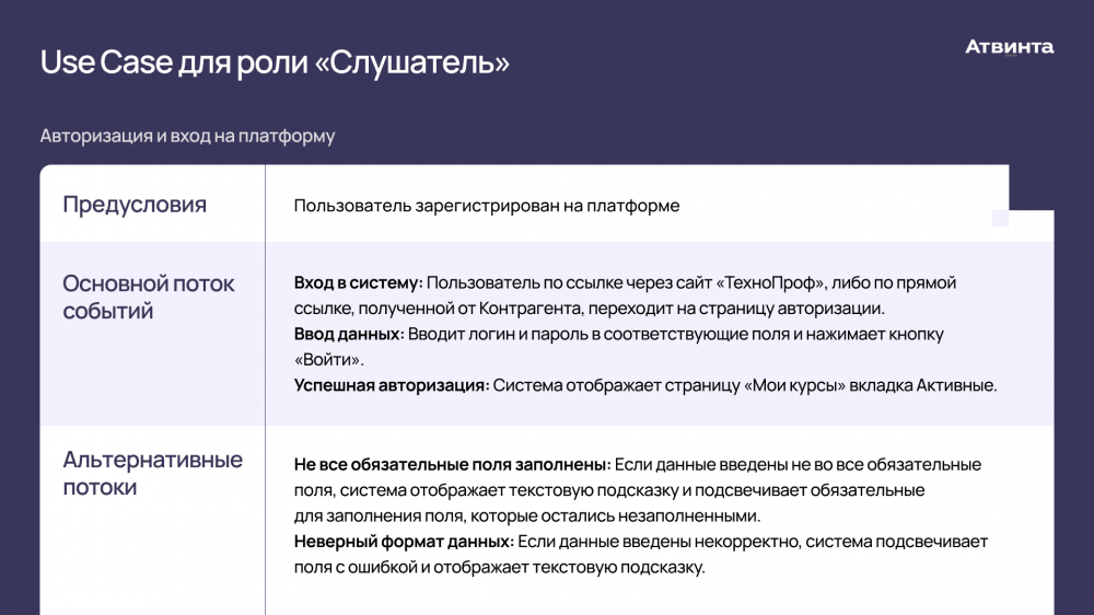 Главный вызов проекта — это снижение нагрузки на администраторов. Ранее они вручную обрабатывали заявки, выдавали доступы и оформляли документы. Мы автоматизировали эти процессы и ускорили взаимодействие между контрагентами, слушателями и модераторами платформы.