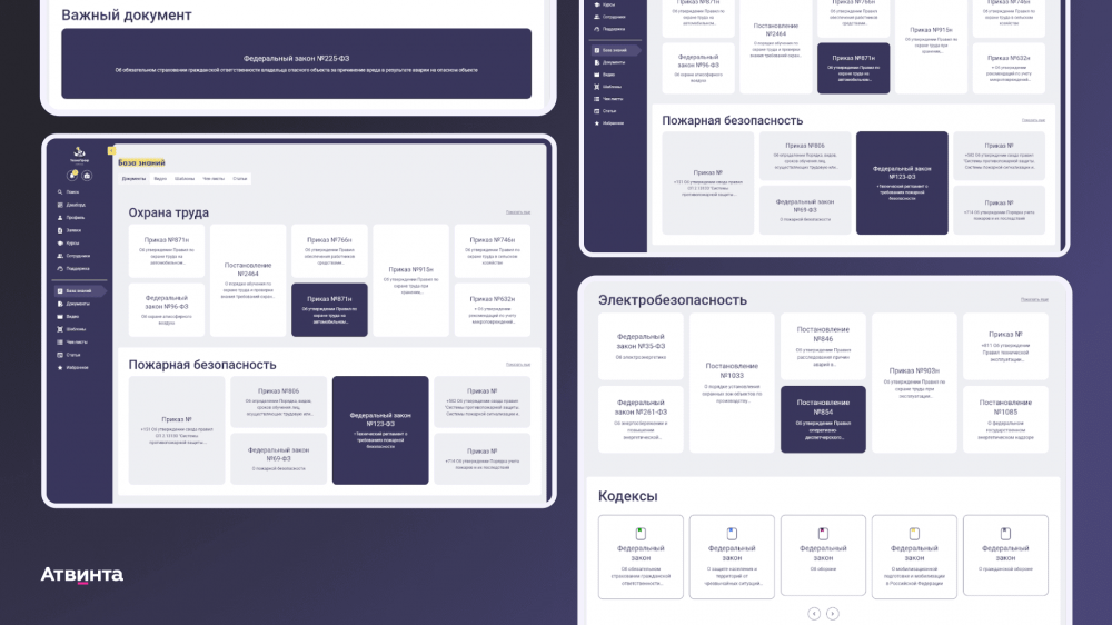 Разработали систему, в которой можно легко добавлять, редактировать и структурировать контент, используя текстовые материалы, видео, нормативные документы, тесты и интерактивные элементы в формате вопросов виртуального помощника.