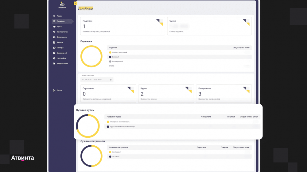 Также внедрили дашборды и аналитику. Компании получили возможность отслеживать статистику обучения, прогнозировать потребности в курсах и управлять подписками.