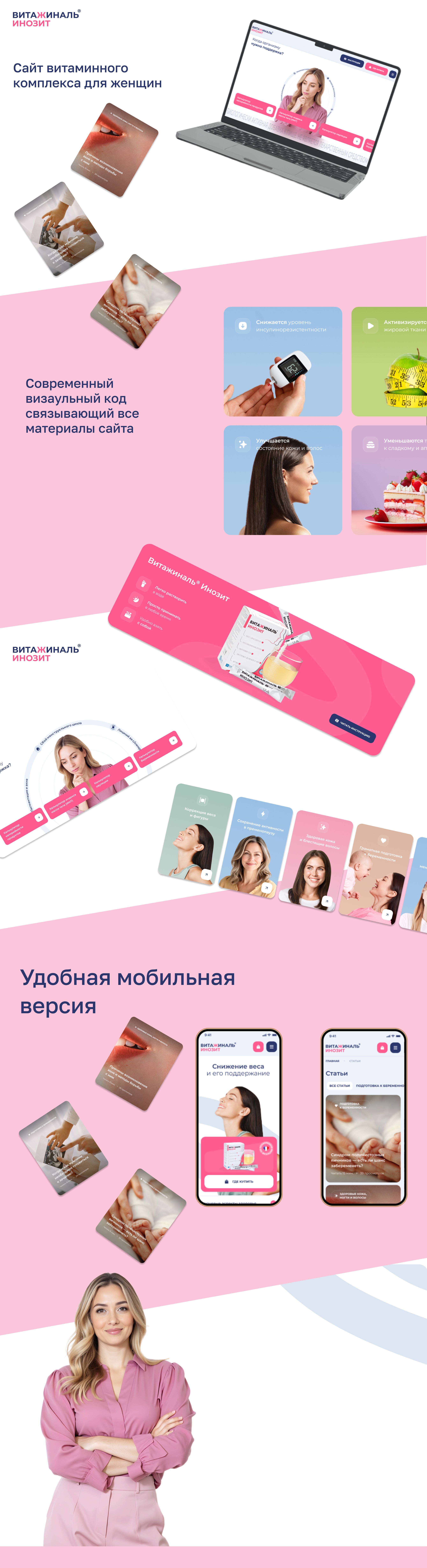 Провели глубокое изучение темы препарата Витажиналь® Инозит и потребностей целевой аудитории. Это позволило эффективно представить на сайте важные характеристики продукта, используя текстовый контент и инфографику для наглядного объяснения проблем и решений.